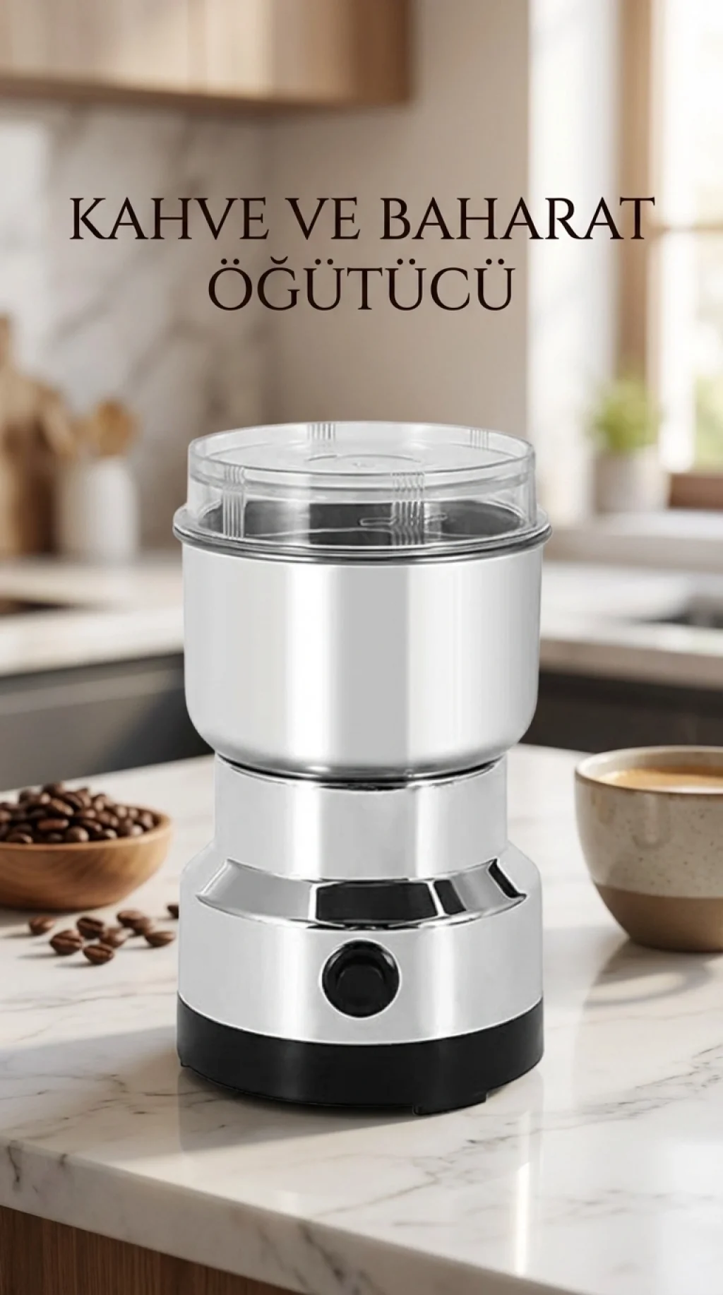 Kahve ve baharat öğütücü, farklı incelikte öğütme seçenekleri sunar. Kolay temizlenebilir çelik yapı ile uzun süre dayanıklılık sağlanır. Taze aroma için tüm baharatlar ve kahveler hızlıca öğütülür.