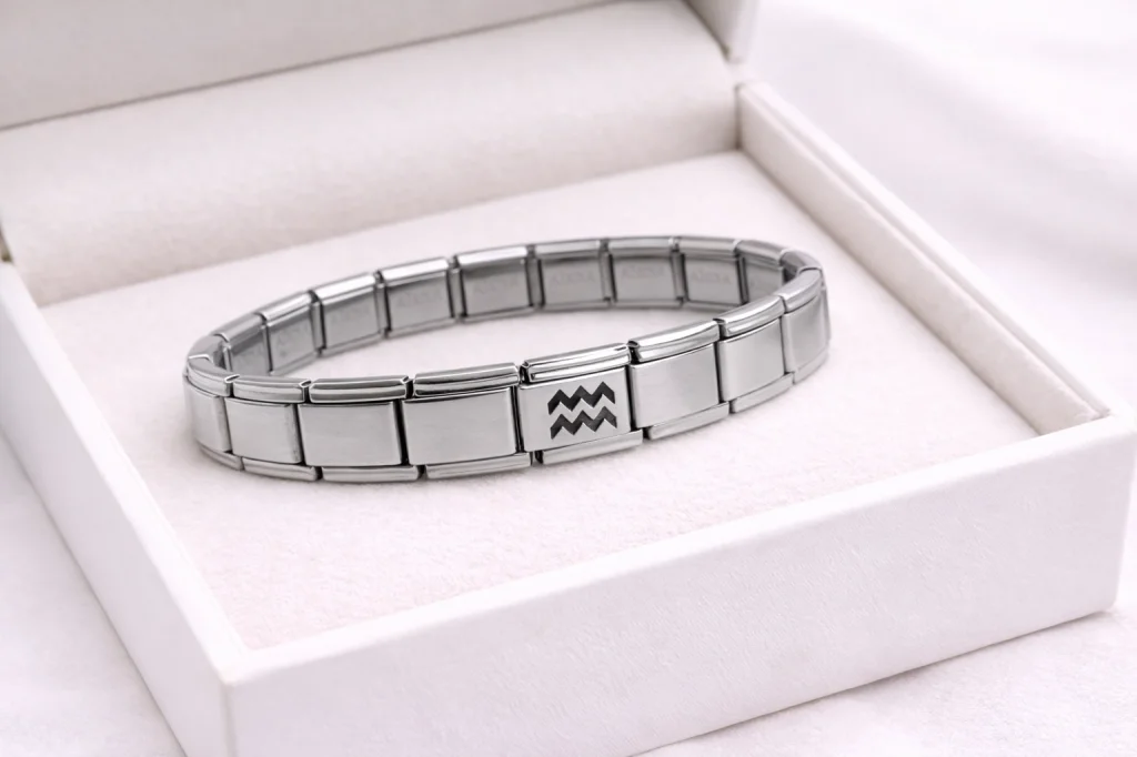 Çelik Nomination Bileklik Kova Burcu | Paslanmaz Çelik Burç Bilekliği | Modern ve Özgün Tasarım Özgürlüğü, yenilikçiliği ve sıra dışı bakış açısını temsil eden Kova Burcu Nomination Bileklik, stilinde fark yaratmak isteyenler için özel olarak tasarlanmıştır. Tamamı paslanmaz çelikten üretilmiş bu Nomination bileklik, kararma ve renk atma yapmadan uzun süreli kullanım sunar. Esnek yapısı sayesinde bileğe kolayca uyum sağlar ve gün boyu konfor sağlar. Orta bölümde yer alan Kova burcu sembolü, bilekliğe modern ve karakterli bir görünüm kazandırır. Minimal ve zamansız tasarımı sayesinde hem günlük kombinlerde hem de özel günlerde rahatlıkla kullanılabilir. Kova burcunun özgür ruhunu ve yenilikçi enerjisini yansıtan bu bileklik; kendiniz için güçlü bir stil tamamlayıcısı, Kova burcu sevdikleriniz için ise anlamlı ve şık bir hediye alternatifidir. Ürün Özellikleri: