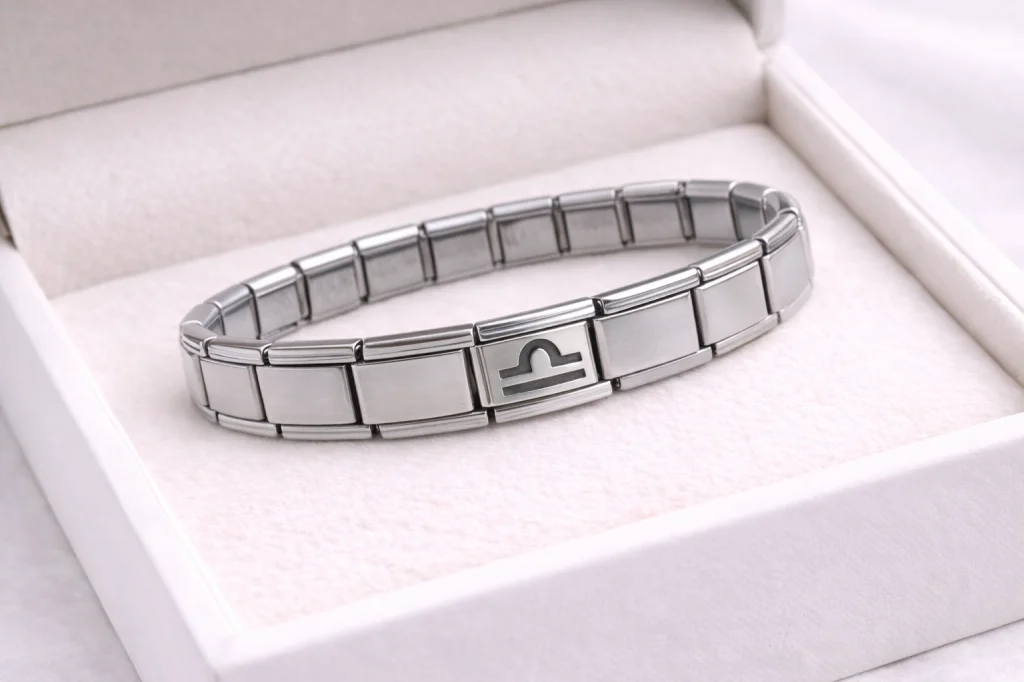 Çelik Nomination Bileklik Terazi Burcu | Paslanmaz Çelik Burç Charm Detaylı | Zarif ve Dengeli Tasarım Zarafet, denge ve estetik anlayışıyla bilinen Terazi burcunu simgeleyen bu Çelik Nomination Bileklik, stiline anlam katmak isteyenler için özel olarak tasarlanmıştır. Parlak yüzeyli paslanmaz çelik yapısı sayesinde kararma ve renk atma yapmaz; uzun süre ilk günkü şıklığını korur. Orta bölümde yer alan Terazi burcu charm detayı, bilekliğe sade ama karakterli bir görünüm kazandırır. Esnek Nomination yapısı bileğe kolayca uyum sağlar ve gün boyu konfor sunar. Minimal ve zamansız tasarımıyla hem günlük kombinlerde hem de özel günlerde rahatlıkla kullanılabilir. Şık takı kutusu içerisinde gönderilmesi, ürünü Terazi burcu sevdikleriniz için güçlü ve anlamlı bir hediye alternatifi haline getirir. Ürün Özellikleri: