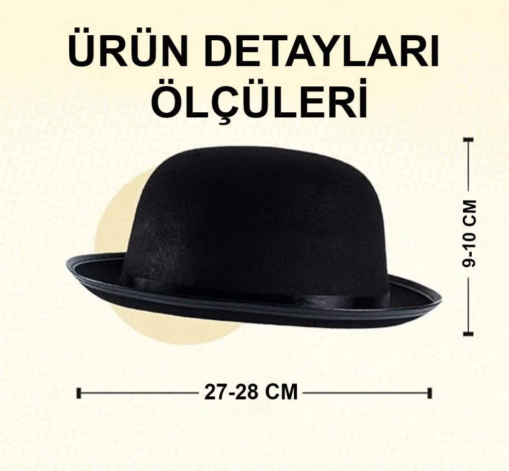 BUĞZ Charlie Chaplin Stil Yetişkin Şapkası – Siyah Melon Parti Şapkası