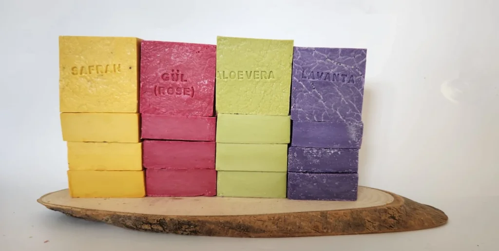 Safran Sabunu Faydaları Safran mutfaklarımızda olduğu kadar kozmetikte de çok değerli bir üründür. Safran sabunun cilde birçok faydası bulunur. Cildin sıkılaşmasını sağlar ve kırışıklık oluşumunu engeller. Akne ve sivilcelerin ciltten atılmasında son derece etkilidir. Cildin doğal yağ ve nem dengesini korur. Aloe vera sabunu: cildi temizler ve bakterileri öldürür. Aynı zamanda cildi yumuşatır ve nemlendirir. Aloe vera sabunu, cildin ve saçın sağlıklı büyümesine de yardımcı olur, cildin iltihaplanmasını önler ve cildin daha sağlıklı ve parlak görünmesini sağlar. Ayrıca cildi iyileştirir ve yara iyileşmesini hızlandırır. Lavanta Sabunu Faydaları Cilt lekelerini giderebilir. Sivilce ve akneye iyi gelir. Cilt kuruluğuna iyi gelir. Cildi parlatır. Kırışıklıkları giderir. Saç uzamasını hızlandırabilir. Kepeğe iyi gelir. Saçları besler. Gül sabunu: Ciltteki gözenekleri tıkayan toz, kir ve bakterilerin temizlenmesinde kullanılan gül sabunu, güneş lekelerinin ve ergenlikten kalan sivilce lekelerinin giderilmesi için de kullanılmaktadır. Kuru ve nemsiz olan ciltler için de gül sabunu, etkili bir temizleyici ve nemlendirici özelliğe sahiptir.
