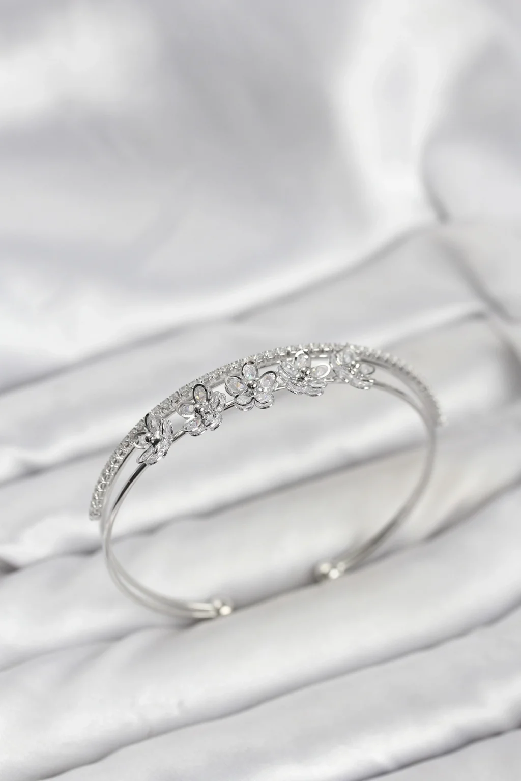 BUĞZ Çiçek Model Pirinç Gümüş Renk Kadın Bileklik