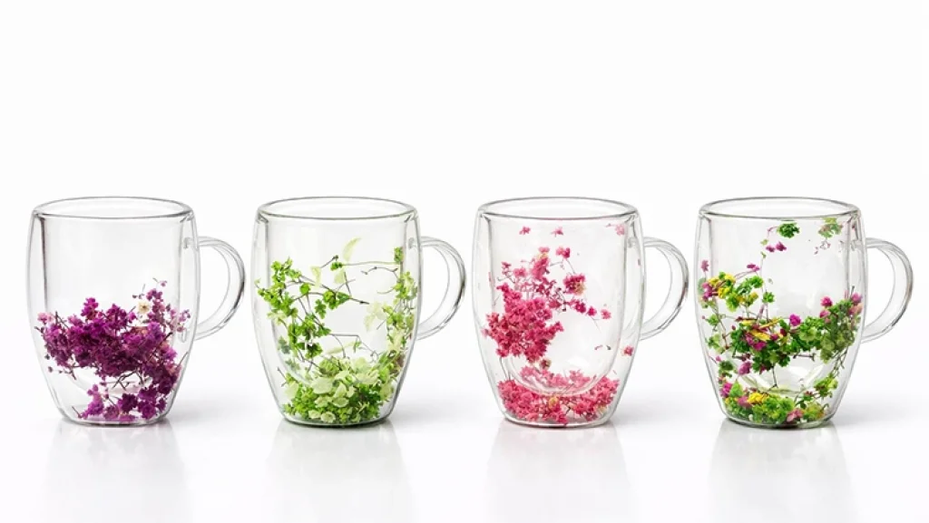 BUĞZ Çift Camlı Çiçekli Borosilikat Kupa Bardak - Model 2