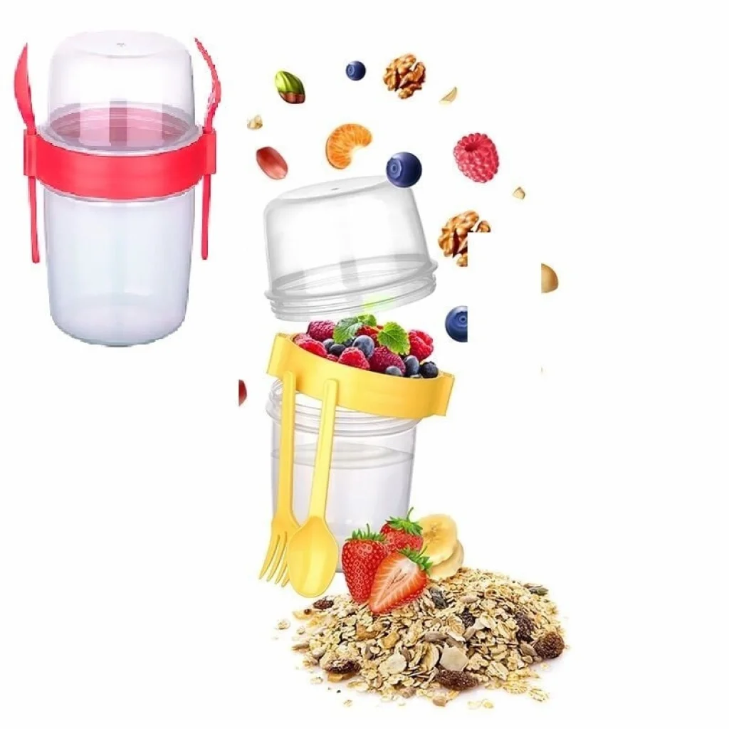 BUĞZ Çift Hazneli - Çatal Kaşıklı Portatif Müsli -Atıştırmalık Kabı 650 ML