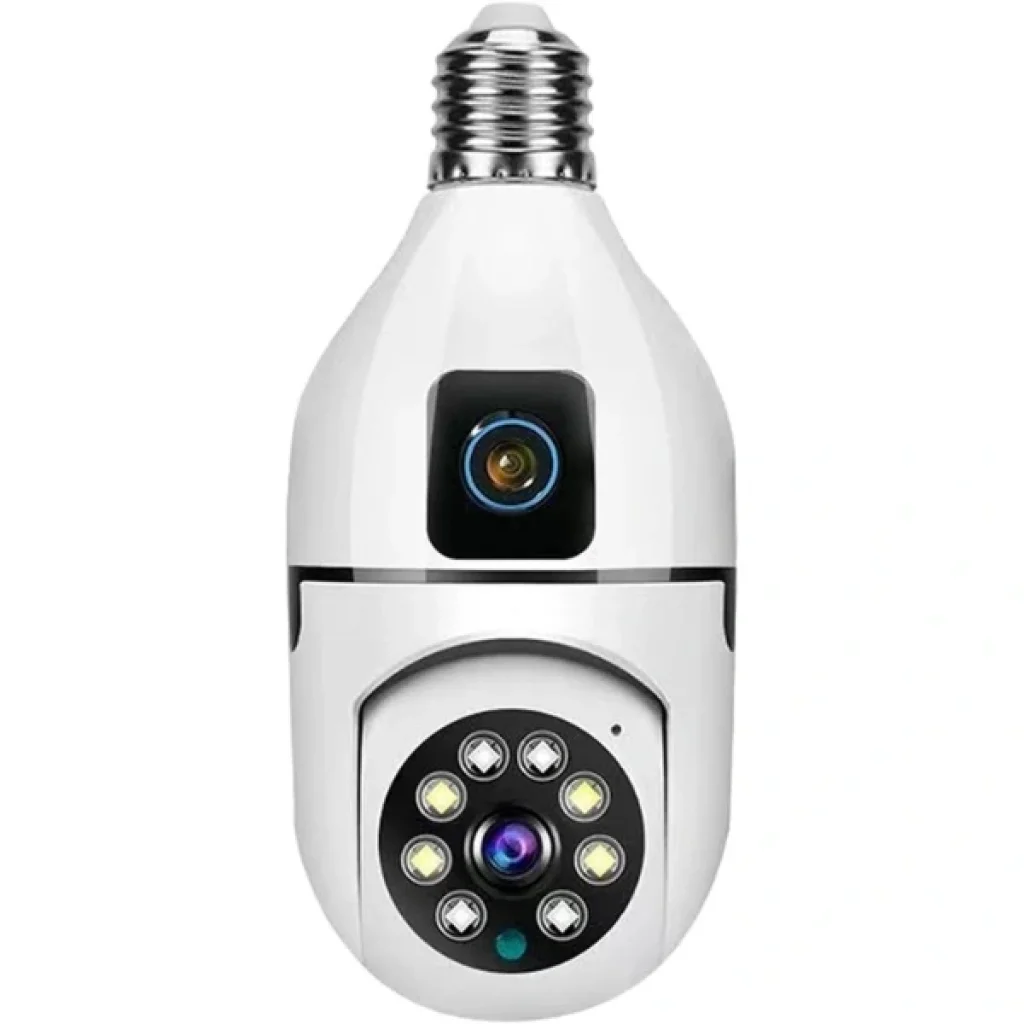 ÇİFT LENSLİ DUY GİRİŞLİ KABLOSUZ AMPUL KAMERAÜrün ÖzellikleriÇift lensli duy girişli kablosuz ampul kamera, pratik kurulumu ve gelişmiş güvenlik özellikleriyle dikkat çeker. E27 duy girişine kolayca monte edilerek ek adaptör gerektirmez. 4K Full HD çözünürlüğü ve 8 MP kamera kalitesi sayesinde net ve yüksek çözünürlüklü görüntüler sunar. 360° panoramik görüş açısı ile geniş alanları kapsar ve kör noktaları ortadan kaldırır.Gece görüş özelliğiyle düşük ışıkta dahi net kayıt alabilen kamera, hareket algılama özelliği sayesinde şüpheli durumlarda anında mesajlı bildirim gönderir. Çift yönlü ses desteği ile hem konuşabilir hem de ortam sesini dinleyebilirsiniz. Wi-Fi bağlantısı ile telefondan kolayca kontrol edilebilir. TF kart desteği ve video kayıt özelliği sayesinde görüntüler güvenli bir şekilde saklanabilir.Paket İçeriği1 adet Çift Lensli Duy Girişli Kablosuz Ampul Kamera