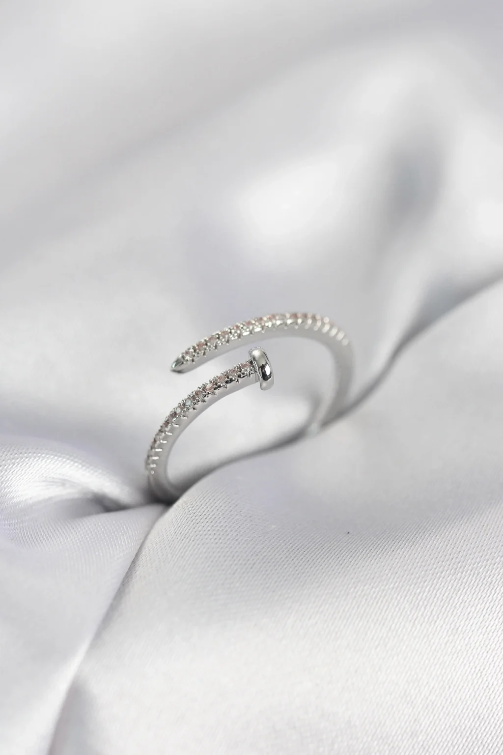 BUĞZ Çivi Model Zirkon Taşlı Gümüş Renk Kadın Yüzük