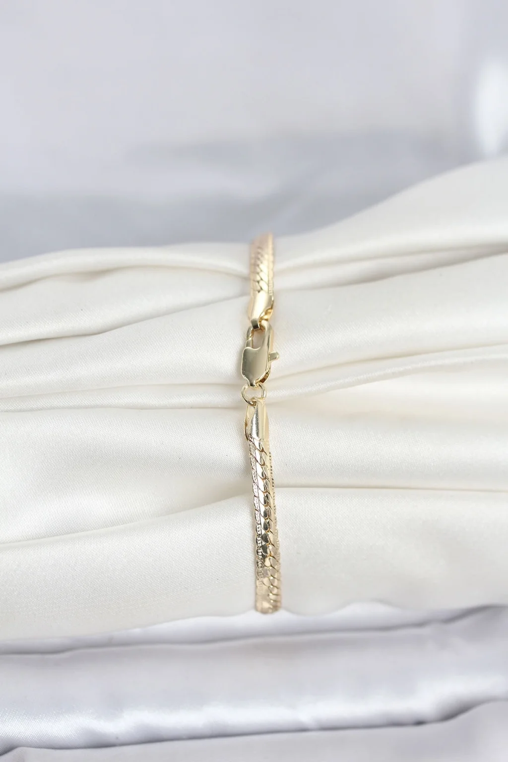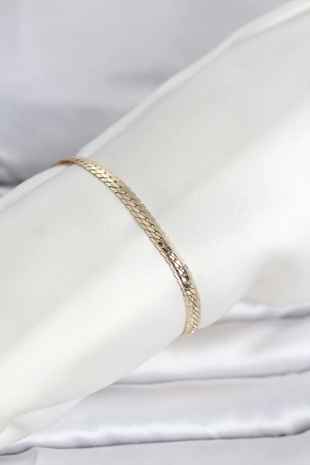 BUĞZ CM 14K Gold Renk Lazerli Yassı Zincir Model Kadın Bileklik