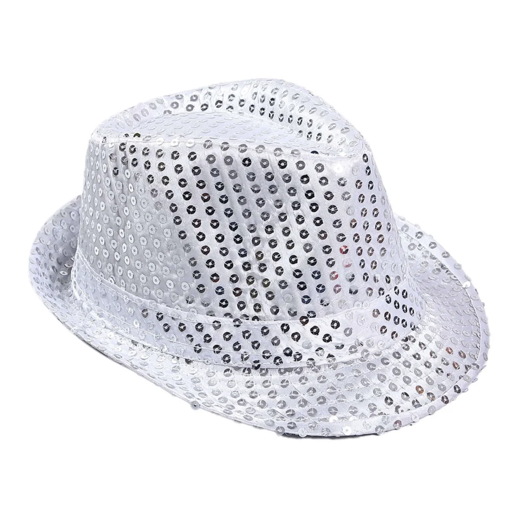 Bu şapka, ister bir gösteride sahneye çıkın ister bir kostüm partisi için giyinin, göz alıcı bir görünüm oluşturmak için mükemmeldir. Yumuşak gümüş payetlerle kaplı şapka, ışıltılı bir etki oluştururuyor.