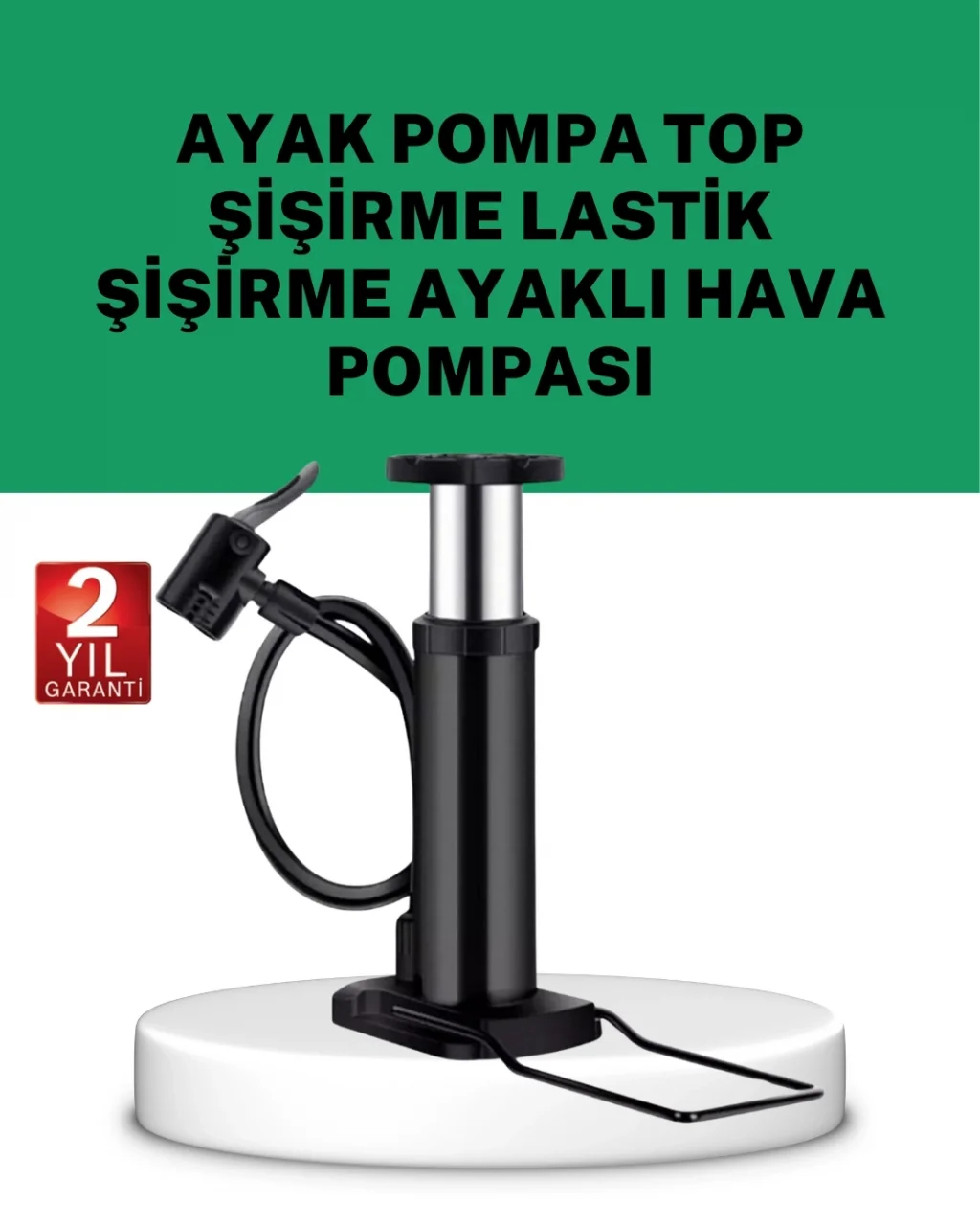 Çok amaçlı ayak pompası, lastik şişirme işlemlerini zahmetsiz ve güvenli hale getirmek için tasarlanmıştır. Elektrik gerektirmeyen manuel yapısı, ürünü her ortamda kullanılabilir kılar. Özellikle araç bagajında bulundurmak için ideal bir çözümdür.Ayakla basılan mekanizma, hava basıncını dengeli şekilde ileterek lastiğin kontrollü biçimde şişirilmesini sağlar. Bu sayede aşırı basınç oluşmasının önüne geçilir. Kullanımı kolaydır ve ekstra bilgi veya deneyim gerektirmez.Dayanıklı gövde yapısı, uzun süreli kullanım için uygundur. Sağlam malzemeden üretilmiş olması, ürünü yoğun kullanımlarda dahi güvenilir hale getirir. Kompakt tasarımı sayesinde yer kaplamaz ve kolay taşınır.Otomobil, motosiklet ve bisiklet lastikleriyle uyumludur. Evde, garajda veya dış mekânlarda rahatlıkla kullanılabilir. Manuel ayak pompası olması, özellikle kamp ve seyahat gibi durumlarda büyük avantaj sağlar.Fonksiyonel tasarımı ve pratik kullanımı ile ayak pompası, günlük ihtiyaçlar için ideal bir hava şişirme çözümüdür.