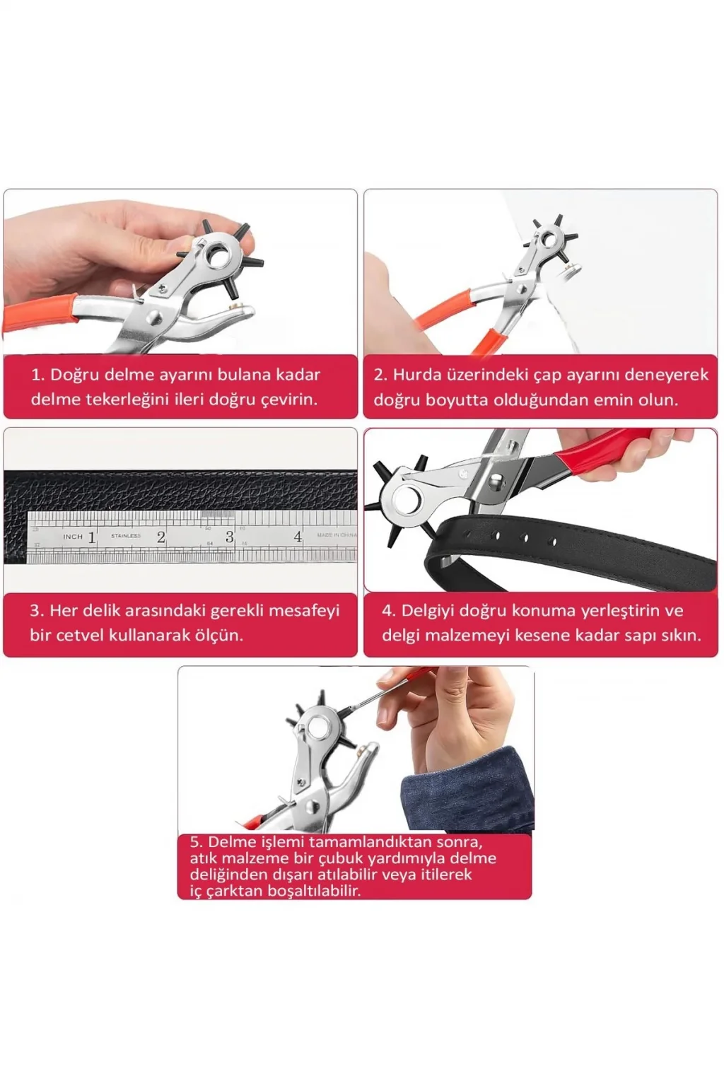 Aşağıdaki tüm alanlarda rahatlıkla kullanılabilir: Deri kemerlerde beden ayarı yapmak, Deri çantalarda, askılarda ya da kulplarda ek delik açmak, Cüzdan veya kemer süslemeleri için dekoratif delikler, Ayakkabı bağcık delikleri açmak veya genişletmek, Kanvas çantalar veya kalın kumaşlarda işlevsel boşluklar oluşturmak, El yapımı hobi ve zanaat projelerinde (örneğin el yapımı deri bileklikler, kayışlar, toka çalışmaları) Bu ürün yalnızca bir pense değil
