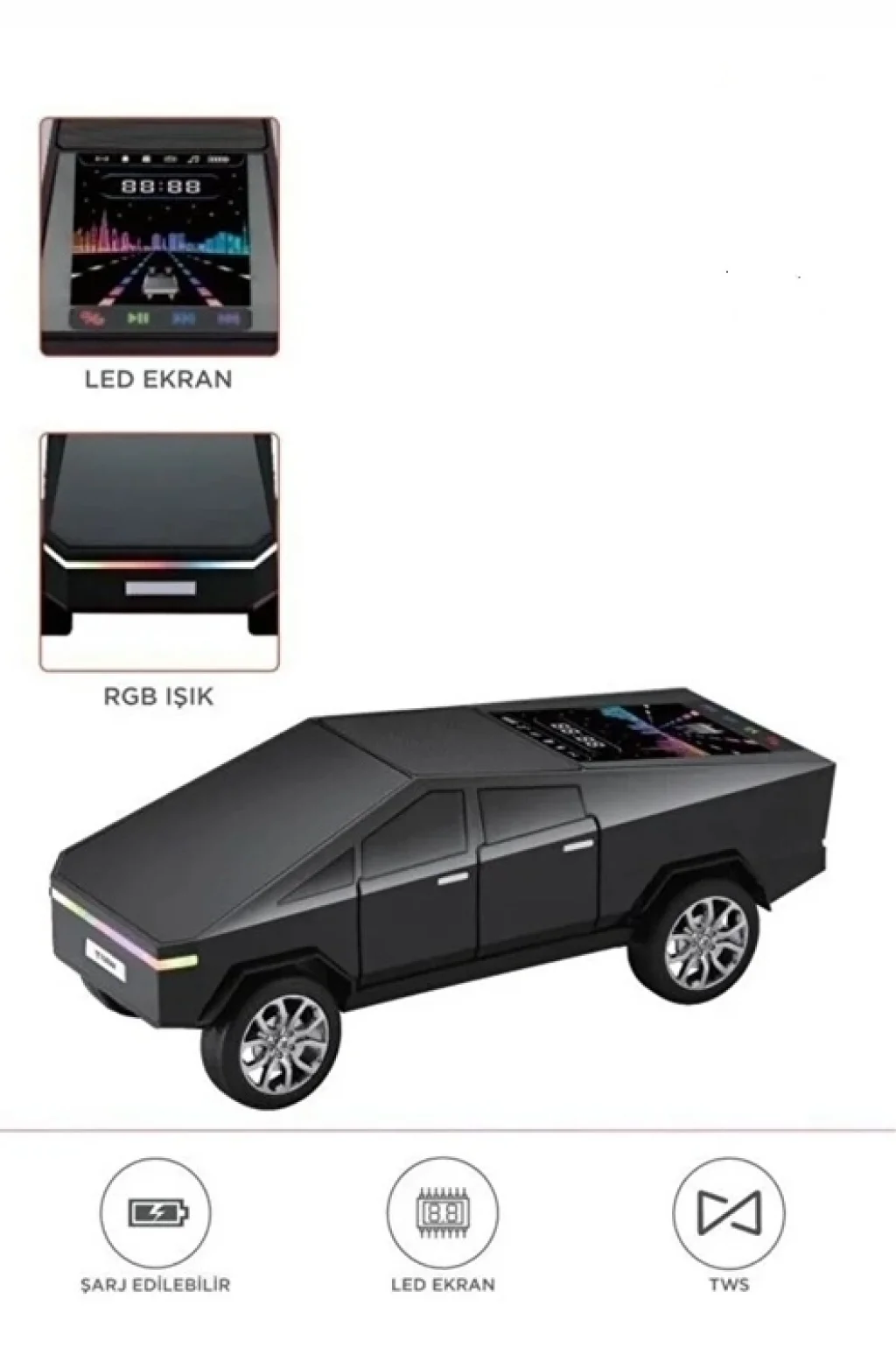 BUĞZ D68 Cyber Model Araba Tasarımlı Bluetooth Hoparlör 15w Güçlü Ses Rgb Led /tws/usb Siyah