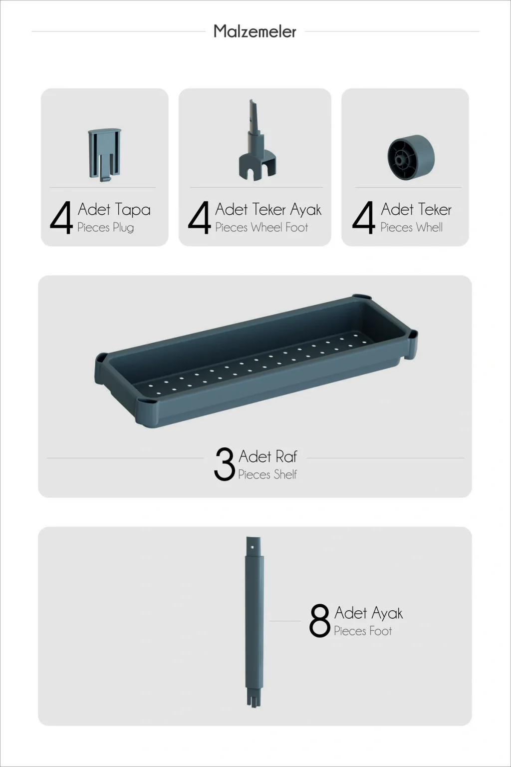 Bu Dar Alan Uyumlu Tekerlekli 3 Katlı Mutfak Rafı ile mutfağınızı düzenlemek artık çok kolay! Ürün Özellikleri: