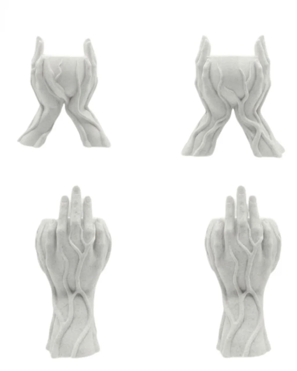 Dekoratif 3D el tasarımlı vazo saksı, modern tasarım anlayışı ile sanatsal estetiği bir araya getiren dikkat çekici bir dekoratif üründür. Özgün tasarımı sayesinde yaşam alanlarında hem dekoratif hem de işlevsel bir kullanım sunar. İki elin bir objeyi tutuyormuş gibi tasarlanması ürüne estetik bir karakter kazandırırken aynı zamanda modern dekorasyon stillerine uyum sağlayan farklı bir görünüm oluşturur. Bu tasarım yalnızca bir saksı veya vazo değil aynı zamanda sanatsal bir dekoratif obje olarak da değerlendirilebilir.3D baskı teknolojisi kullanılarak üretilen bu dekoratif vazo, detaylı el formu ve akıcı yüzey tasarımı sayesinde oldukça dikkat çekici bir görünüm sunar. Eller tarafından destekleniyormuş hissi veren bu tasarım hem minimalist hem de modern dekorasyon anlayışı ile uyum sağlayabilecek estetik bir form sunar. Ev dekorasyonu, ofis dekorasyonu veya çalışma alanlarında kullanıldığında bulunduğu ortama sanatsal bir dokunuş kazandırır.Dekoratif el tasarımlı saksı vazo özellikle küçük bitkiler için ideal bir kullanım sunar. Sukulent, kaktüs veya küçük dekoratif bitkiler ile birlikte kullanıldığında oldukça şık bir görünüm oluşturur. Bunun dışında masa dekoru, kalemlik veya raf süsü olarak da değerlendirilebilir. Çok yönlü kullanım özelliği sayesinde hem dekoratif hem de fonksiyonel bir aksesuar olarak kullanılabilir.Salon, çalışma odası, kitaplık, televizyon ünitesi veya ofis masası üzerinde kullanıldığında bulunduğu ortama modern ve estetik bir atmosfer kazandırır. Minimalist dekorasyon, modern dekorasyon veya sanatsal dekorasyon konseptleri ile uyum sağlayabilecek bir tasarıma sahiptir.Dekoratif 3D el tasarımlı vazo aynı zamanda dekoratif hediye arayanlar için de oldukça özel bir alternatiftir. Ev hediyesi, yeni ev hediyesi, ofis hediyesi veya dekorasyon meraklılarına verilebilecek estetik bir dekoratif üründür.Modern tasarımı, sanatsal görünümü ve çok amaçlı kullanım imkanı sayesinde dekoratif el tasarımlı 3D vazo yaşam alanlarında dikkat çeken şık bir dekor ürünüdür.Ürün Markası: BUĞZ