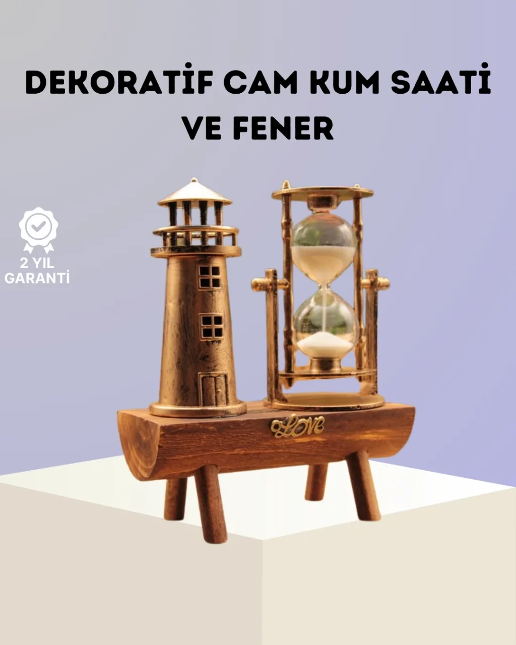 Dekoratif detaylarıyla öne çıkan bu özel tasarım masa süsü, zamanın akışını ve sahil esintisini bir araya getiriyor. Doğal ahşap taban üzerinde yer alan klasik kum saati, cam haznesi içinde yavaşça süzülen kum tanecikleriyle dinginlik sunarken; hemen yanında yer alan şık deniz feneri figürü, sıcak ve huzurlu bir atmosfer yaratır. 15x20 cm ölçüsündeki bu masa üstü dekorasyon ürünü, hem kompakt hem de dikkat çekici yapısıyla yaşam alanlarınızın havasını değiştirir.Üretiminde kullanılan kaliteli ahşap ve detaylı figür işçiliği sayesinde uzun ömürlü bir kullanım sunar. Ofis masası, kitaplık, sehpa veya yatak odası komodini gibi birçok alana uyum sağlar. Sahil temalı dekorasyonları tamamlamak isteyenler, rustik tarzı sevenler ya da benzersiz bir hediye arayanlar için ideal bir seçenektir. Ürünün doğal dokusu, sıcak tonları ve nostaljik havası, bulunduğu ortamı samimi ve estetik bir hale getirir. Kum saati, ters çevrilerek defalarca kullanılabilir, görsellik kadar işlevselliğiyle de beğeni toplar.