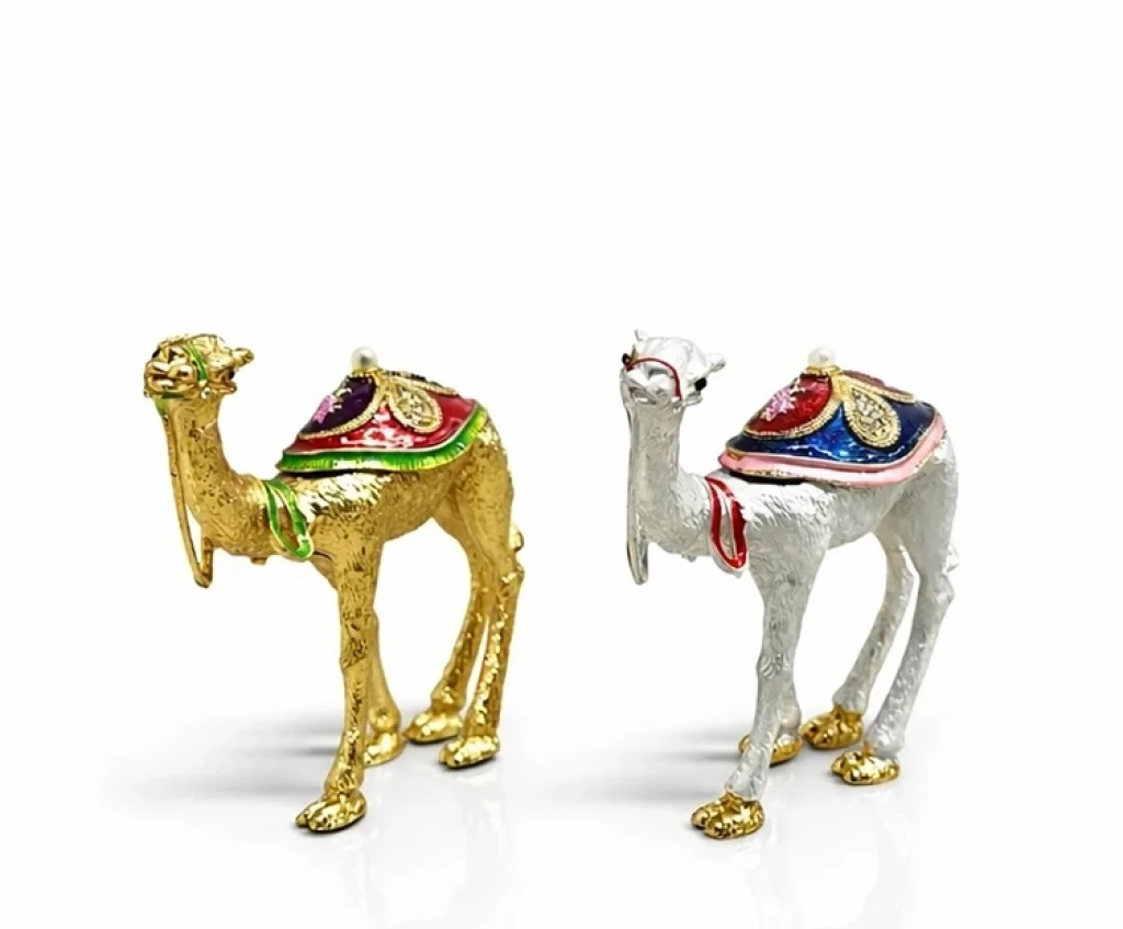 DEKORATİF DEVE TAKI KUTUSUÜrün ÖzellikleriDekoratif Deve Takı Kutusu 11x10 cm, estetik tasarımı ve fonksiyonel yapısı ile hem şık bir dekor objesi hem de pratik bir saklama çözümüdür. 11x10 cm ölçüsündeki kompakt boyutu sayesinde masa üstü, şifonyer ve vitrin alanlarında rahatlıkla konumlandırılabilir. Üst kısmı açılabilir formda tasarlanan bu dekoratif takı kutusu, küçük aksesuarlarınızı düzenli şekilde saklamanıza yardımcı olur. Detaylı deve figürü tasarımı ile dikkat çeken ürün, bulunduğu ortama özgün bir görünüm kazandırır. Dayanıklı gövde yapısı sayesinde uzun süre dekoratif amaçlı kullanılabilir. Ürün, görselde yer alan renk seçeneklerinden olarak gönderilir; renk tercihi yapılamaz.Ürün Teknik Özellikleri Özellik Açıklama Ürün Adı Dekoratif Deve Takı Kutusu Ölçü 11 x 10 cm Tasarım Açılabilir deve figürü model Kullanım Alanı Takı ve küçük aksesuar saklama Renk Görseldeki renklerden gönderilir Paket İçeriği1 adet Dekoratif Deve Takı Kutusu
