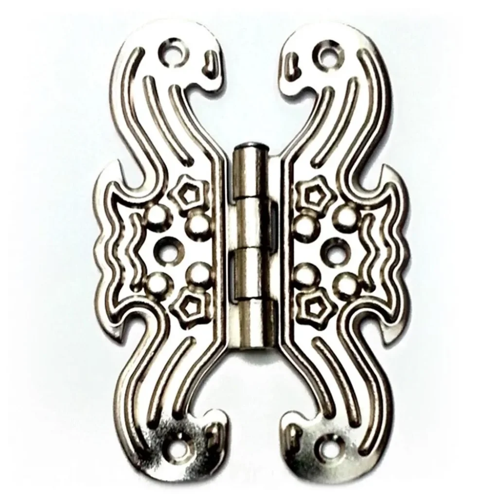 Dekoratif sac kelebek menteşe, büyük boyutu ve nikel kaplamasıyla hem estetik hem de işlevsel bir çözüm sunar. Tekli , bireysel projeler ve küçük ölçekli kullanımlar için mükemmel bir tercihtir.