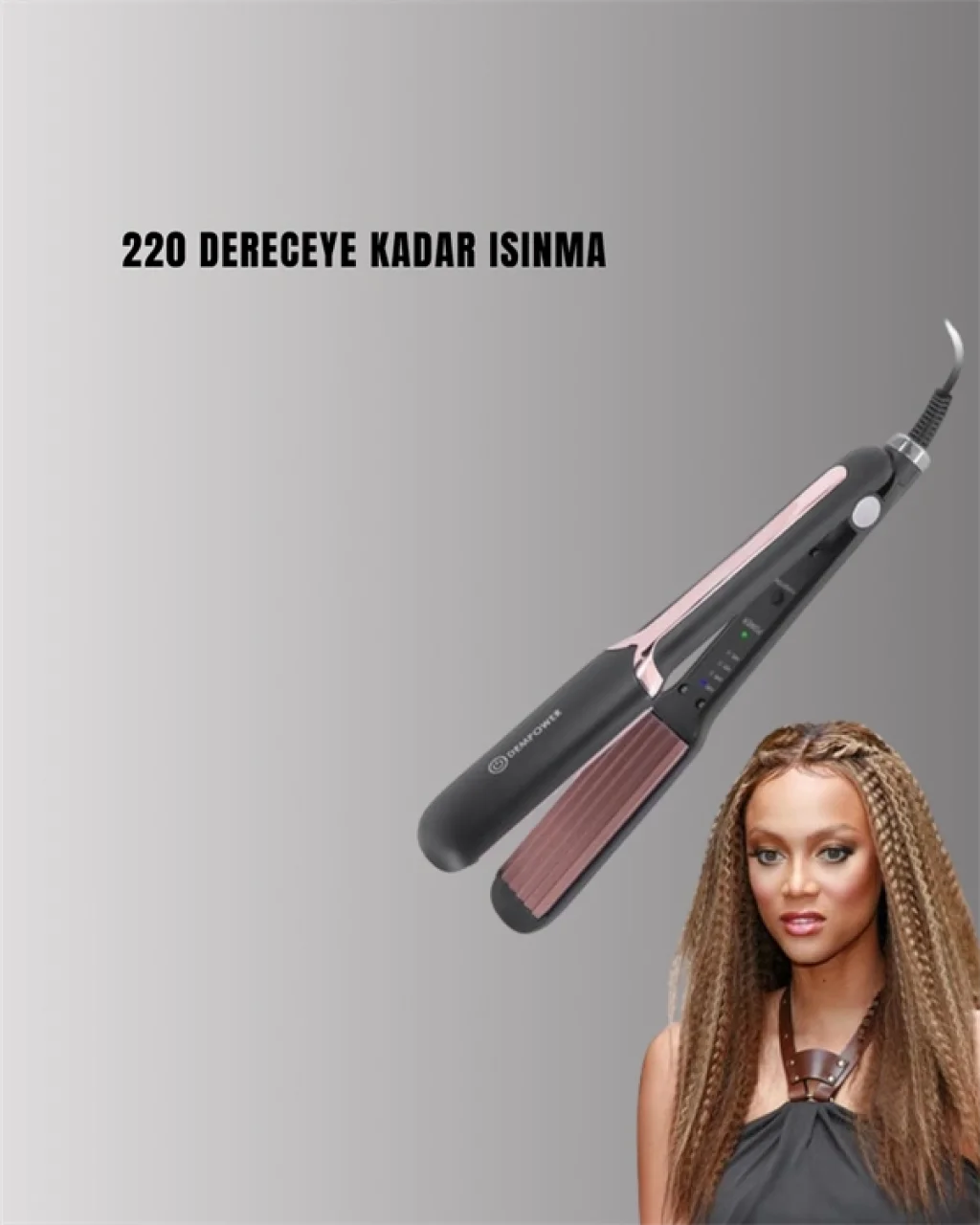 DEMPOWER DP-134 tost saç şekillendirici, tarz sahibi kadınların favori saç aletlerinden biri olmaya aday. Kullanımı kolay yapısı sayesinde evde kendi saç stilinizi yaratabilir, kuaföre ihtiyaç duymadan harika sonuçlar elde edebilirsiniz.220 dereceye kadar ulaşabilen sıcaklığı ile kısa sürede etkili sonuçlar verir. Tost plakaları, saçları nazikçe kavrar ve şekillendirirken aynı zamanda hacim kazandırır.360 derece dönebilen kablo, kullanım sırasında rahatlık sağlar ve kablo dolanma derdini ortadan kaldırır. Isı ayarı ve güvenlik göstergeleri ile donatılmış yapısı sayesinde güvenle kullanılabilir. Tost modeli saç isteyen herkes için ideal bir çözümdür. Ürün Markası: BUĞZ