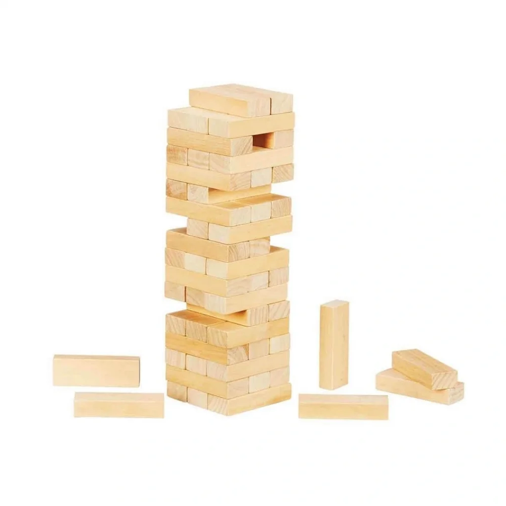 Denge oyununda ama.ccedil; tahta blokları .ccedil;ekerek kulenin .uuml;st.uuml;ne koymak, tabii kuleyi devirmeden! Ahşap blokları 3.rsquo;l.uuml; sıralar halinde birbirine dik gelecek a.ccedil;ılar şeklinde dizin ve oyuna başlayın.