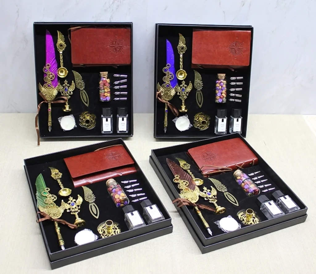 DERİ DEFTERLİ DİVİT HOKKA VE MÜHÜR SETİ MODEL 2Ürün ÖzellikleriDeri Defterli Divit Hokka ve Mühür Seti Model 2, nostaljik yazım deneyimini zengin bir içerikle birleştiren özel bir kaligrafi ve mühürleme setidir. 30x25 cm boyutundaki şık hediye kutusu içerisinde yer alan deri kapaklı defter, klasik divit kalem, farklı uç alternatifleri, hokka mürekkebi, balmumu ve mühür aparatı; hem estetik hem de fonksiyonel kullanım için özenle hazırlanmıştır. Deri defter, özel yazılar, günlük notlar ve hat sanatı çalışmaları için ideal bir yazım yüzeyi sunarken divit kalem ve hokka mürekkebi nostaljik bir yazı deneyimi sağlar. Mühür ve balmumu detayları ise özel mektupların, davetiyelerin ve belgelerin kişisel mühürleme ile tamamlanmasına imkân tanır. Renk seçimi yapılamaz; görseldeki seçeneklerden biri karışık olarak gönderilir. Hem koleksiyon değeri taşıyan hem de etkileyici bir hediye niteliği sunan şık bir settir.Paket İçeriği1 adet Deri Defterli Divit Hokka Ve Mühür Seti Model 2