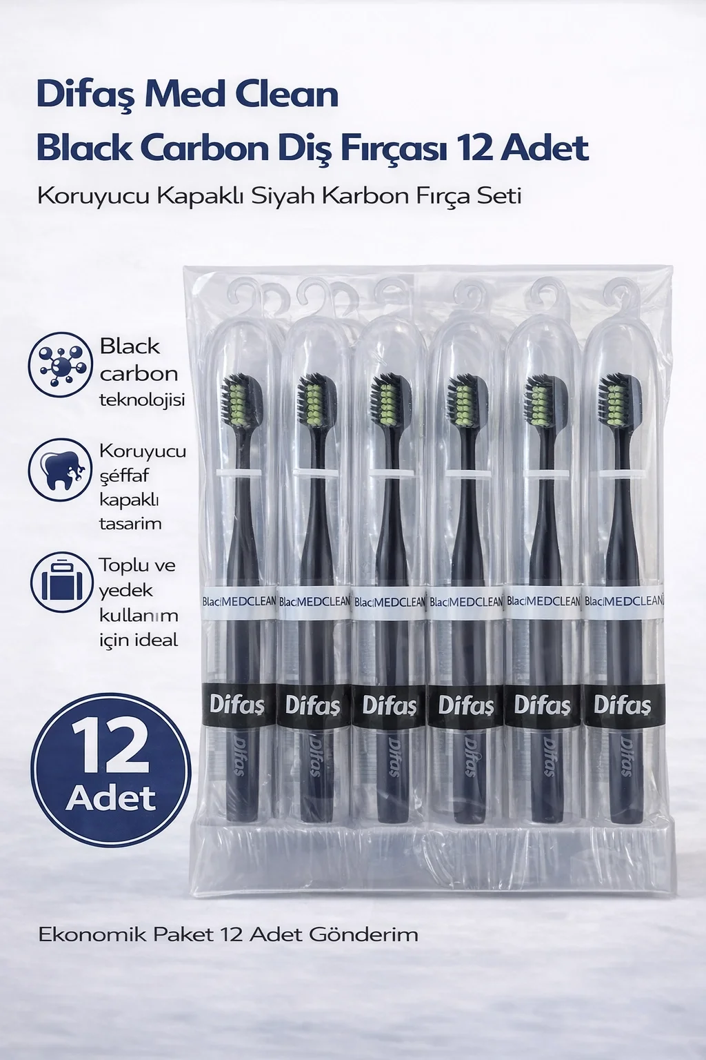 difaş med clean black carbon diş fırçası 12 adet, difaş siyah diş fırçası seti, karbon diş fırçası 12 li, black carbon toothbrush set, med clean diş fırçası, yetişkin diş fırçası toplu, plak temizleyici diş fırçası, kapaklı diş fırçası seti, ekonomik diş fırçası paketi, 12 li diş fırçası, difaş ağız bakım ürünleri