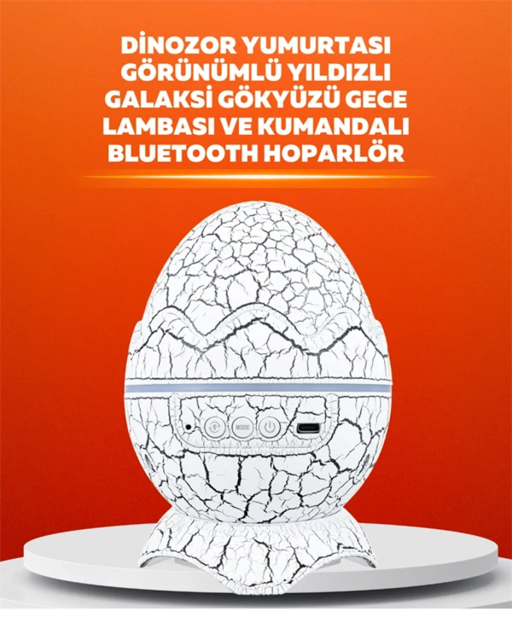 Dinozor yumurtası görünümüne sahip bu projektörlü gece lambası, hem dekoratif hem işlevsel kullanım sunar. Üzerindeki döner projektör sayesinde odanıza yıldızlı gökyüzü yansıtabilir, ışık modlarını isteğe göre değiştirebilirsiniz. Şık tasarımı sayesinde sadece çocuk odasında değil, oturma odasında ya da yatak odasında da kullanılabilir.Ürün Markası: Lisinya