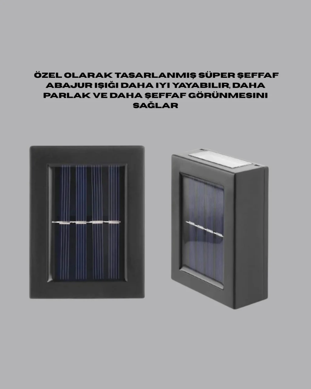 Bu solar LED duvar lambası, dış mekân dekorasyonu ve güvenli aydınlatma ihtiyaçlarını karşılamak için özel olarak tasarlanmıştır. Polikristalin silikon güneş paneli, gündüzleri güneş ışığını maksimum verimle emer. Güneş ışığı ile tam şarj olduğunda, gece boyunca yaklaşık 8 saat kesintisiz aydınlatma sağlar.IP65 su geçirmez özelliği sayesinde yağmur, nem ve tozdan etkilenmez. Bu da lambayı yıl boyunca güvenle dış ortamda kullanmanıza olanak tanır. Lambanın çalışması için elektrik bağlantısına gerek yoktur; dahili 1.2V/600 mAh şarjlı batarya ile çalışır.Şeffaf PC malzemeden üretilen abajur, ışığı daha yaygın ve net bir şekilde dağıtır. Işık kalitesi yükselir, aydınlatma alanı genişler. Üründe üç farklı ışık seçeneği bulunur: beyaz ışık, sıcak ışık ve dekoratif renkli ışık. Bu seçeneklerle farklı ortamlarda farklı atmosferler oluşturabilirsiniz.Montajı oldukça pratiktir. Ürünle birlikte vida ve dübel gibi gerekli aksesuarlar da gönderilir.