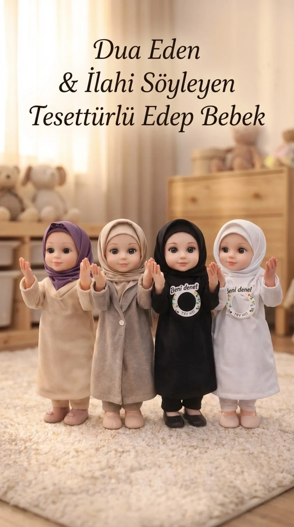 Dua eden ve ilahi söyleyen bu tesettürlü edep bebek, çocuklar için anlamlı bir oyun arkadaşıdır. Ramazan ve dini günlerde eğitici bir atmosfer oluşturur. Bebek, kültürel değerlerle harmanlanmış oyun deneyimi sunar.