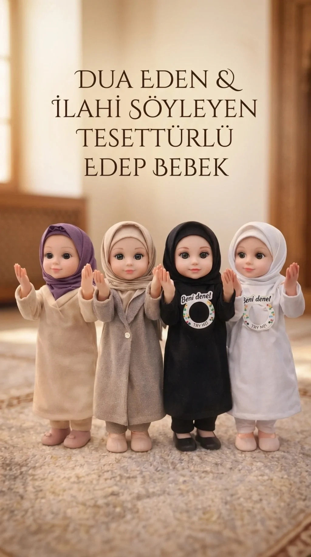 Tesettürlü olarak tasarlanan bu bebek, dua etme ve ilahi söyleme özelliklerine sahiptir. Özellikle Ramazan dönemi için idealdir. Çocuklara manevi değerleri eğlenceli bir şekilde öğretir ve deneyimleme fırsatı sunar. Edep bebek, en yakın arkadaşları olabilir ve eğitici bir rol üstlenebilir.