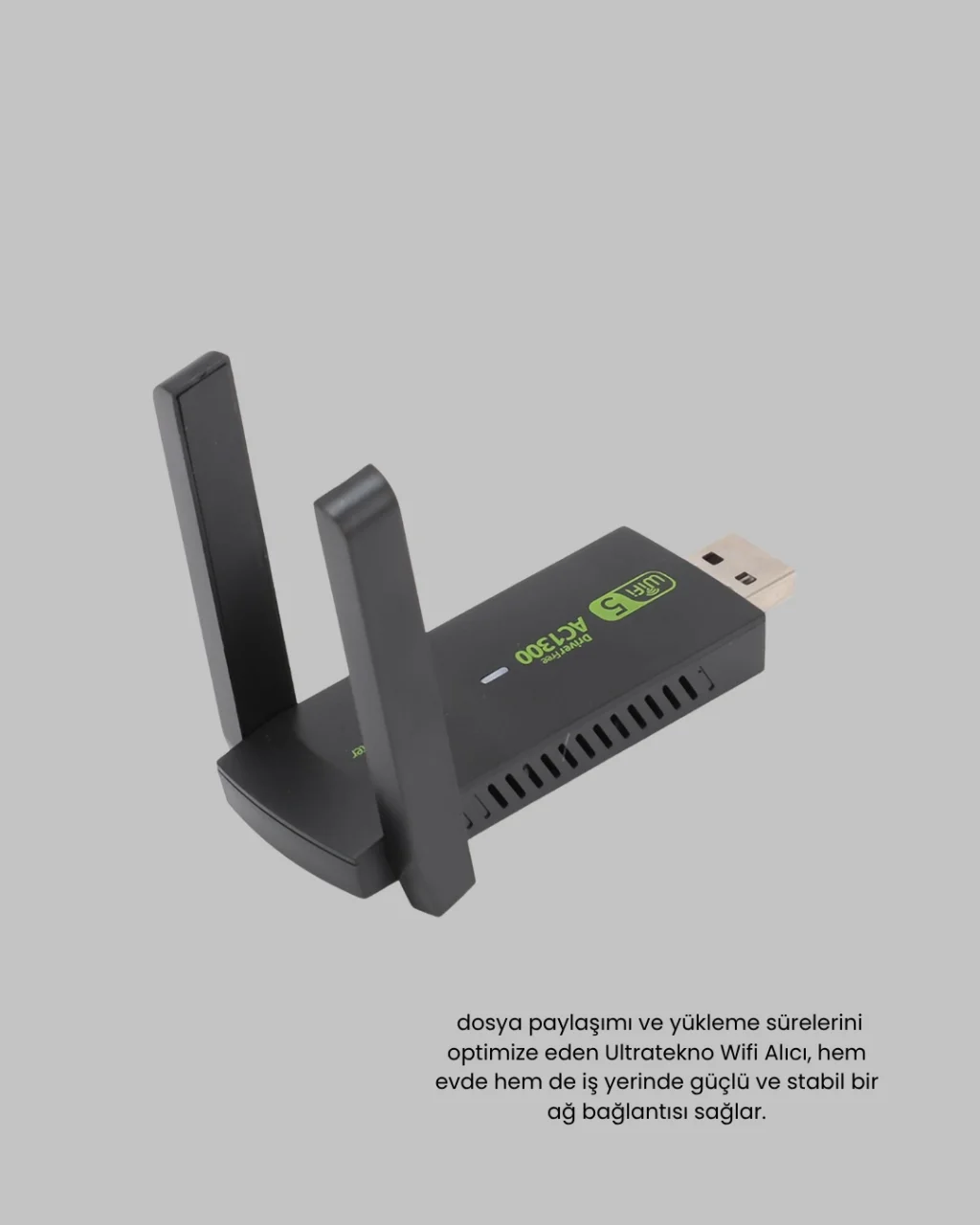 Yüksek hız ve kararlılığı bir araya getiren Dual Band USB WiFi Adaptör, internet deneyiminizi tamamen değiştiriyor!Çift bant teknolojisi sayesinde 2.4 GHz ve 5.8 GHz frekanslarında çalışarak, 1200 Mbps’ye kadar bağlantı hızı sunar. Bu sayede HD video izleme, online oyun oynama veya büyük dosyalar indirme gibi yüksek veri gerektiren işlemleri kesintisiz şekilde gerçekleştirebilirsiniz.Çift antenli güçlü tasarımı, geniş bir kapsama alanı sağlar ve zayıf sinyalli bölgelerde bile istikrarlı bir bağlantı sunar. İnternet kesintileri veya düşük sinyal sorunları artık geçmişte kalıyor.USB 3.0 bağlantı desteği, veri transfer hızını artırarak gecikmeleri en aza indirir. Bu sayede kablosuz bağlantıda maksimum performans elde edilir.Windows 10/8/7/Vista/XP/2000 ve Mac OS X 10.15 işletim sistemleriyle tam uyumludur. Eski ya da yeni bilgisayar fark etmeksizin kolayca tanınır ve hızlı kurulum imkânı sunar. Tak-çalıştır özelliği sayesinde teknik bilgiye gerek kalmadan anında kullanıma başlayabilirsiniz.Hem ev kullanıcıları hem ofis ortamları için ideal olan bu adaptör, stabil, güçlü ve hızlı internet bağlantısı arayanlar için mükemmel bir çözümdür.Modern, pratik ve güçlü: Dual Band USB WiFi Adaptör ile her yerde kesintisiz bağlantı keyfi sizi bekliyor!Ürün Markası: Lisinya