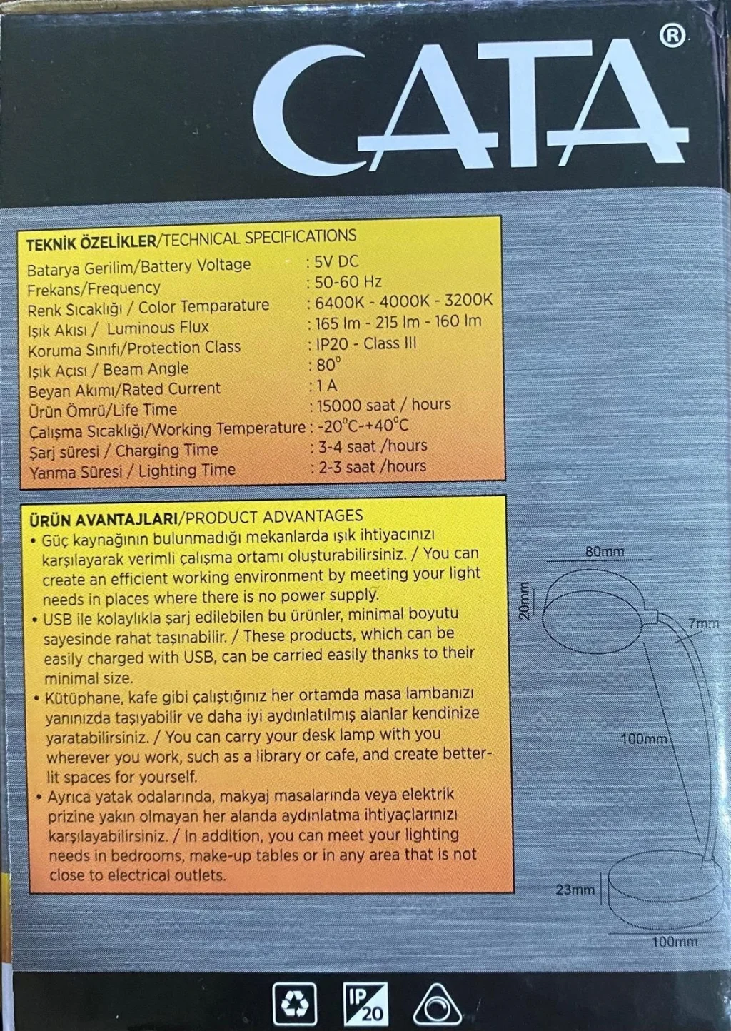CATA CT 8440 Beyaz Kasa Dimmerli Dokunmatik 4000K Berlin Masa Lambası