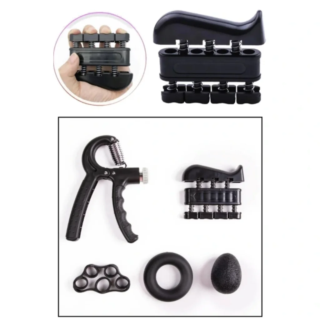 EL VE PARMAK GÜÇLENDİRİCİ EGZERSİZ SETİÜrün ÖzellikleriEl ve parmak güçlendirici egzersiz seti, kavrama gücünü artırmak, el ve parmak kaslarını geliştirmek ve rehabilitasyon sürecini desteklemek için tasarlanmış çok fonksiyonlu bir settir. Setin içerisinde ayarlanabilir dirençli el yayı yer alır, bu yayı 5 kg ile 60 kg arasında ayarlanabilir direnç seviyesiyle el kaslarını etkili şekilde çalıştırır. Parmak genişletici lastik, parmak kaslarını çalıştırarak kas dengesini sağlar ve tersi yönde kuvvet geliştirmek için idealdir. Stres topu (egzersiz yumurtası) ise avuç içi kavrama gücünü artırmakla kalmaz, aynı zamanda stres azaltma amacıyla da kullanılabilir. Parmak egzersiz cihazı, her parmak için ayrı yay sistemine sahiptir ve özellikle müzisyenler, tırmanışçılar ve fizik tedaviye ihtiyaç duyan bireyler için uygundur. Kavrama halkası ise basit ve etkili bir direnç sunar, kolay taşınabilir yapısıyla her ortamda kullanılabilir. Sporcular, müzisyenler, masa başı çalışanlar veya stres yönetimine ihtiyaç duyan herkes için ideal bir çözümdür. Ofiste, evde ya da antrenman öncesi-sonrası kullanıma uygundur.Paket İçeriği1 Adet El Ve Parmak Güçlendirici Egzersiz Seti