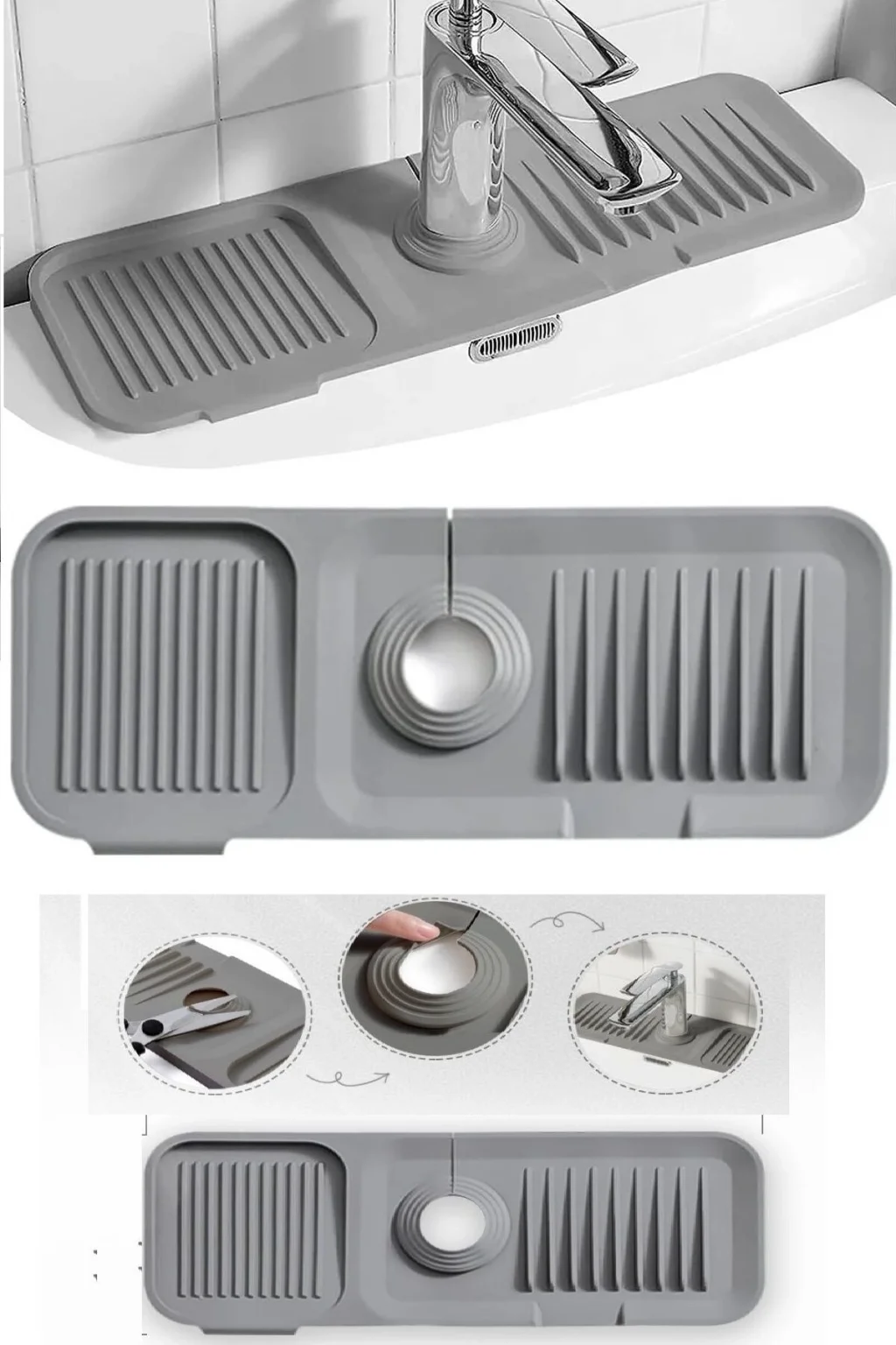 BUĞZ Elastik Mutfak Banyo Musluk Matı Düzenleyici Kaydırmaz Taban Organizer Lavabo Kenar Matı
