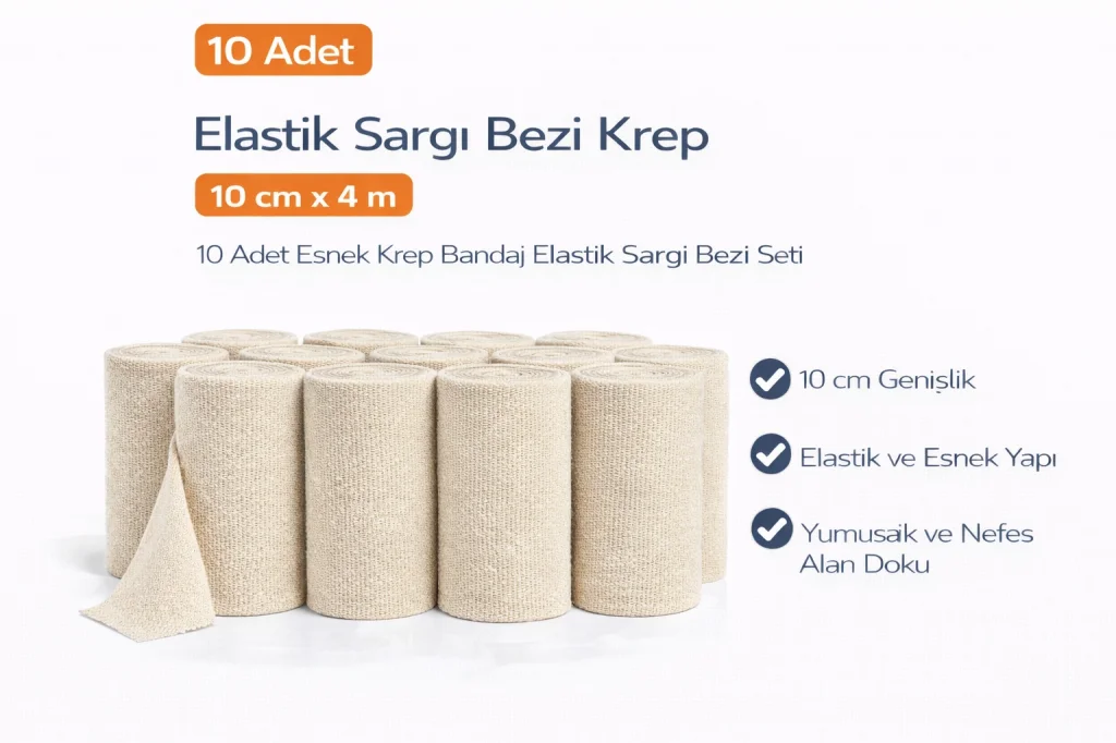elastik sargı bezi 10 cm x 4 m 10 adet 10 lu krep sargı bezi elastik bandaj 10 cm krep bandaj elastik bandaj seti krep sargı bezi toplu esnek sargı bezi medikal elastik bandaj krep elastik bandaj çoklu elastik sargı bezi