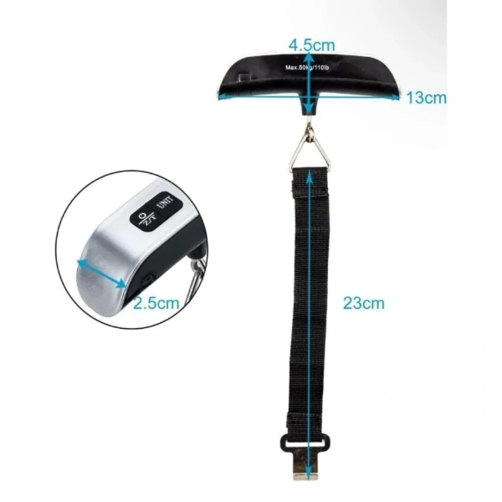ELEKTRONİK EL BAGAJ - VALİZ TARTISIÜrün ÖzellikleriElektronik el bagaj tartısı, seyahatlerinizde valizlerinizi kolayca tartmanıza yardımcı olacak küçük ve hafif bir cihazdır. 50 kg'a kadar ölçme kapasitesine sahip olan bu tartı, taşınması ve kullanımı son derece kolaydır. 13x3,5 cm boyutları ile kompakt ve pratik bir tasarıma sahiptir. Seyahat ederken bagajınızın ağırlığını öğrenmek, havayolu şirketlerinin bagaj kurallarına uymanızı sağlamak için idealdir. LCD ekranı sayesinde tartı sonuçlarını kolayca okuyabilirsiniz. Hem evde hem de seyahatte kullanıma uygun, dayanıklı ve pratik bir üründür.Paket İçeriği1 Adet Elektronik El Bagaj - Valiz Tartısı