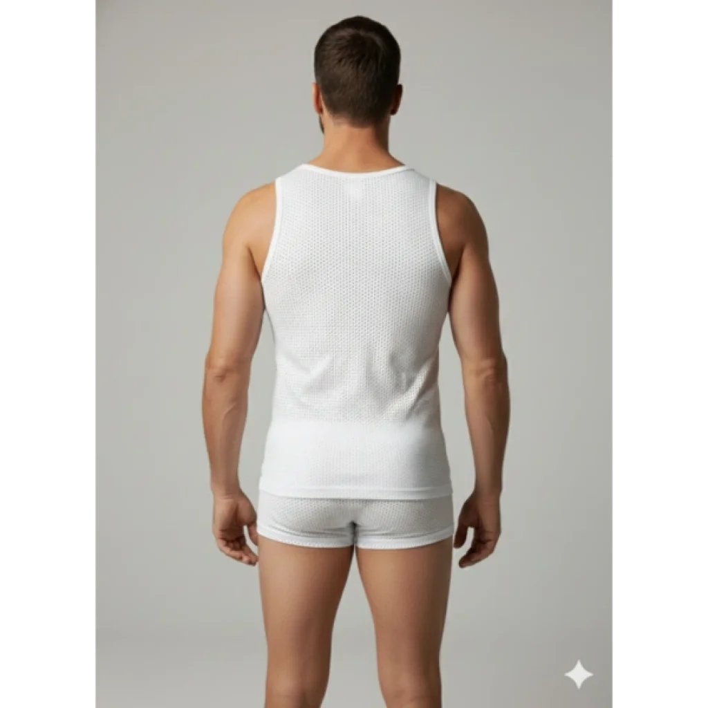 BUĞZ Erkek Beyaz File Tank Top Boxer Takımı