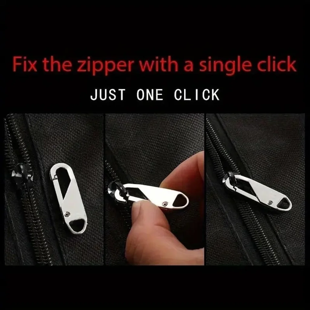 Fermuar başlıklı karabina kilit: Fermuar sürgüsü, fermuarın bir tarafında bir baskı ile sabitlenir, bu da fermuarı fazla çaba harcamadan onarmak için daha iyi bir çözümdür
