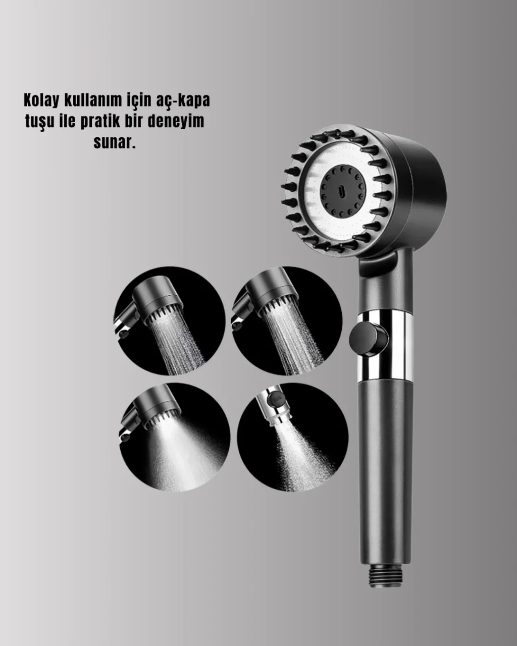 Filtreli masaj özellikli duş başlığı, banyo deneyimini daha konforlu, hijyenik ve keyifli hale getirmek için tasarlanmıştır. Aç kapa tuşu sayesinde su akışını tek hareketle kontrol etme imkânı sunar. Bu pratik özellik, duş sırasında suyu kapatmak ya da yeniden açmak için musluğa uzanma ihtiyacını ortadan kaldırır ve özellikle günlük kullanımda büyük kolaylık sağlar.Ürün, masaj fonksiyonu ile duş sırasında rahatlatıcı bir etki oluşturur. Özel su çıkış kanalları sayesinde suyu dengeli ve güçlü bir şekilde dağıtarak cilt üzerinde masaj hissi yaratır. Günün yorgunluğunu atmak, kasları gevşetmek ve daha ferah bir duş deneyimi yaşamak isteyenler için idealdir. Masaj etkisi, aynı zamanda suyun daha verimli kullanılmasına yardımcı olur.Filtreli yapısı sayesinde sudaki tortu, kireç ve istenmeyen partiküllerin büyük bir kısmının süzülmesine katkı sağlar. Bu özellik, özellikle sert suya sahip bölgelerde hem cilt hem de saç sağlığı açısından avantaj sunar. Filtreleme sistemi sayesinde su daha yumuşak hissedilir ve duş sonrası ferahlık hissi artar.Dayanıklı plastik materyalden üretilmiş olan duş başlığı, uzun süreli kullanım için uygundur. Neme ve suya karşı dirençli yapısı, deformasyon riskini azaltır. Aynı zamanda kolay temizlenebilir olması sayesinde hijyenik kullanım sunar. Düzenli temizlik ile ilk günkü görünümünü uzun süre korur.Yeni nesil tasarımı, banyonuza modern ve şık bir dokunuş kazandırır. Hem fonksiyonel hem de estetik yapısı ile her banyo dekorasyonuna uyum sağlar. Çok fonksiyonlu tasarımı sayesinde farklı kullanım ihtiyaçlarına cevap verir ve banyo rutininizi daha konforlu hale getirir.Ürün Markası: BUĞZ