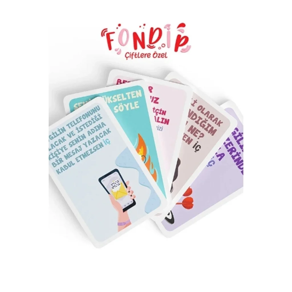 FONDİP! ÇİFTLERE ÖZEL KART OYUNU Ürün ÖzellikleriFondip! Çiftlere Özel, ilişkinize heyecan, tutku ve bolca kahkaha katmak için tasarlanmış interaktif bir yetişkin oyun setidir. "Dik Kafaya!" sloganıyla sunulan bu oyun, çiftlerin birbirini daha yakından tanımasını sağlarken, monotonluktan uzak, eğlence dolu bir gece geçirmelerine olanak tanır. Deste içerisinde yer alan birbirinden farklı 165 adet kart, romantik görevlerden cesur iddialara kadar geniş bir yelpazede komedi ve heyecan içeriğine sahiptir. Özellikle shot kartları ile oyunun temposu her turda artar ve sosyal etkileşimi en üst seviyeye taşır. Yeni jenerasyonun favorisi olmaya aday bu party game, sadece bir oyun değil, partnerinizle aranızdaki bağı güçlendirecek unutulmaz bir deneyim kaynağıdır. Şık pembe kutusu ve kaliteli kart basımıyla öne çıkan Fondip!, özel günlerinizi renklendirmek veya sıradan bir akşamı unutulmaz kılmak için ihtiyacınız olan her şeyi sunar.Ürün Teknik ÖzellikleriÖzellikAçıklamaÜrün AdıFondip! Çiftlere Özel Kart OyunuKart Sayısı165 Özgün Kart (Görev, İddia ve Shot Kartları)Yaş Sınırı+18 (Yetişkinlere özel içerik)Oyun TürüRomantik & Eğlenceli Çift Oyunu / Shot OyunuKullanım AmacıPartnerler Arası Eğlence ve Sosyal EtkileşimTasarımÇiftlere Özel Temalı, Kompakt Pembe KutuÜretim YeriTürkiyePaket İçeriği1 Adet Fondip! Çiftlere Özel Kart Oyunu (165 Adet Kart)