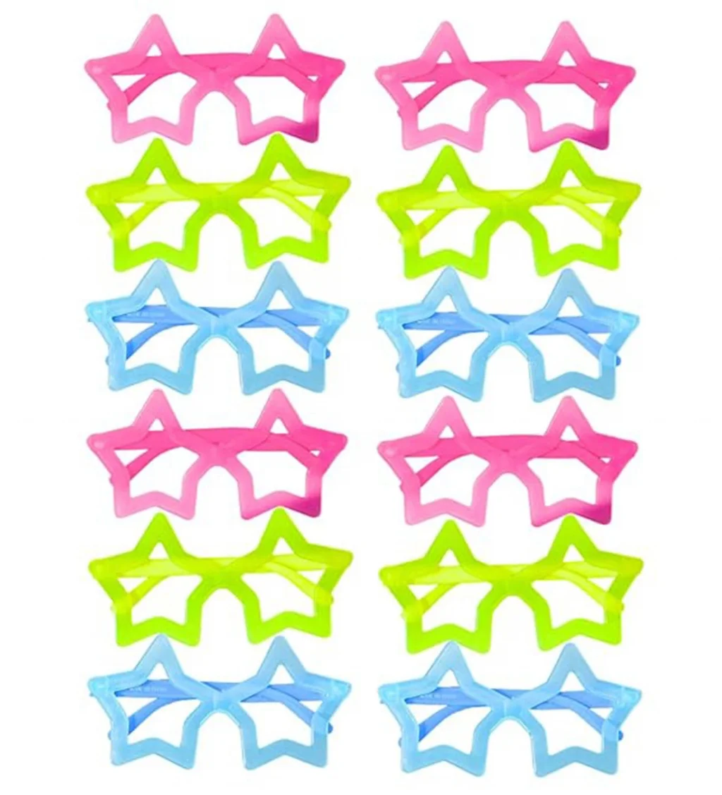 BUĞZ Fosforlu Yıldız Model Glow Parti Gözlüğü Karanlıkta Yanan Gözlükler 12 Adet