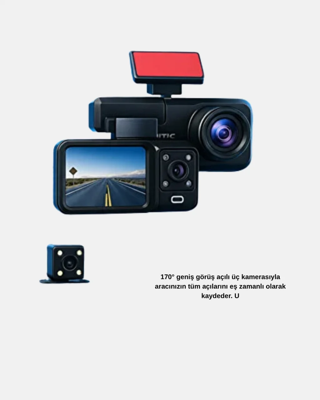 Aracınızın her yönünü aynı anda kontrol altında tutun!Full HD çözünürlükte kayıt yapan üçlü kamera sistemi, ön, iç ve arka alanı 170° geniş açıyla kaydeder.IR LED destekli gece görüş teknolojisi, karanlık ortamlarda bile net ve canlı görüntüler sunar.G-sensör teknolojisi, olası çarpışmalarda dosyaları korur ve üzerine yazılmasını engeller.Hareket sensörü modu, park halindeyken bile güvenlik sağlar.Döngüsel kayıt sistemi, kesintisiz kayıt deneyimi sunar; dolan hafıza otomatik olarak yenilenir.2.7 inç IPS ekran, canlı görüntü ve ayar kontrolünü kolaylaştırır.Kullanıcı dostu menüsü ve hızlı kurulumu sayesinde hemen kullanıma hazırdır.Bu araç kamerası, güvenli sürüş deneyimi ve profesyonel kayıt performansı arayanlar için mükemmel bir tercihtir.Ürün Markası: Lisinya