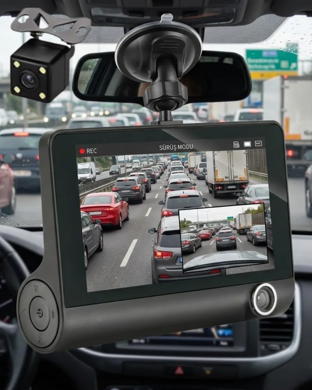 Bu araç içi kamera, gündüz ve gece fark etmeksizin yüksek performanslı kayıt sağlar. Full HD 1080P çözünürlük ile net ve detaylı görüntü elde edilir. Ön ve arka kamera sistemi ile çift yönlü güvenlik sağlanır.170° geniş açı lens daha geniş yol görüntüsü sunar. WDR teknolojisi ışık dengesi sağlar. Gece görüş özelliği karanlık ortamlarda net kayıt sunar.Döngüsel kayıt ve 32 GB microSD desteği sayesinde kesintisiz kullanım sağlar. G-sensör çarpışma anında kaydı kilitler.Park modu ve hareket algılama ile 7/24 araç güvenliği sağlanır. 4 inç LCD ekran anlık görüntü kontrolü sunar.Araç kamerası, oto güvenlik kamerası ve çift lens araç DVR kategorisinde güçlü bir üründür.