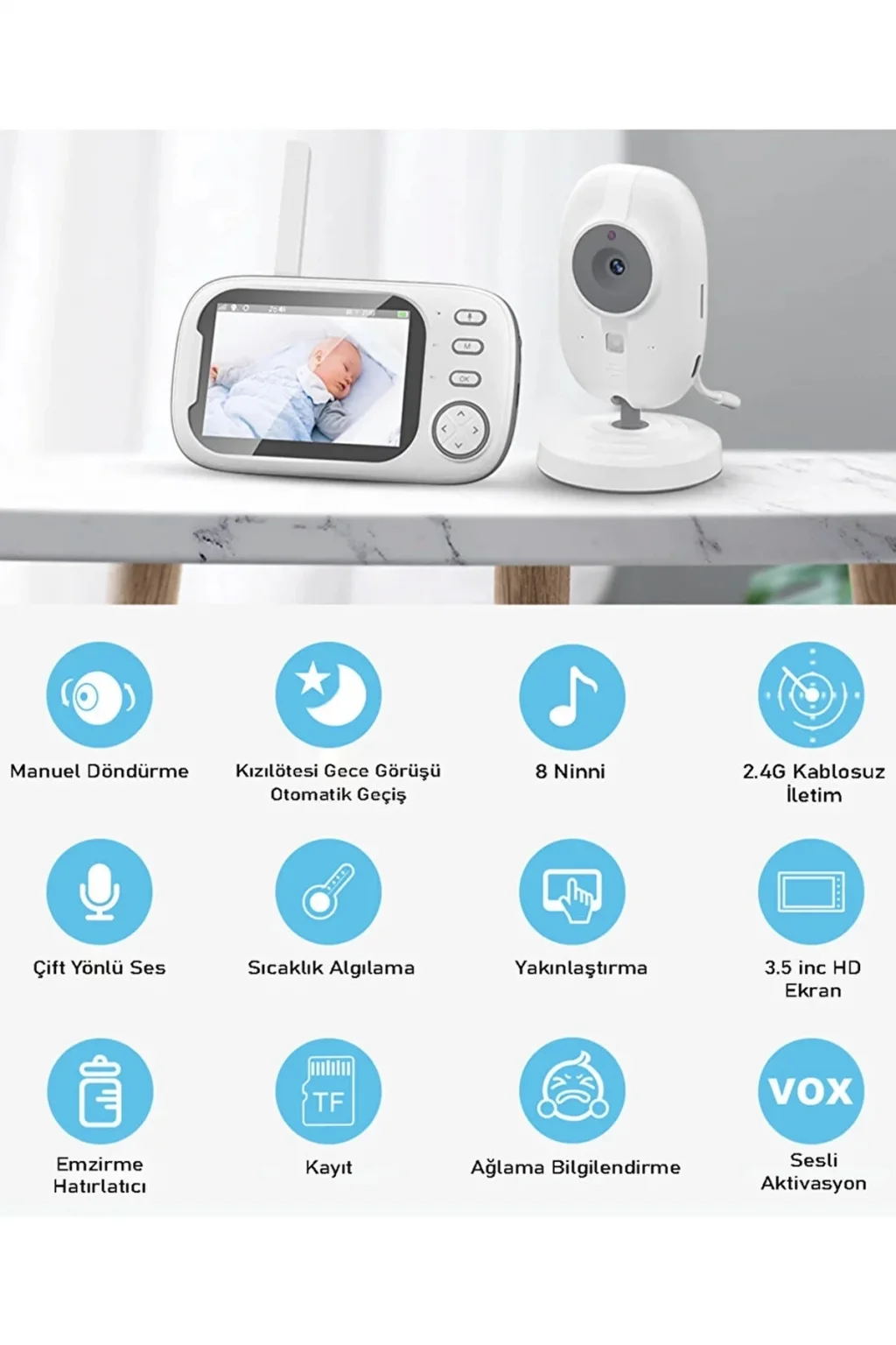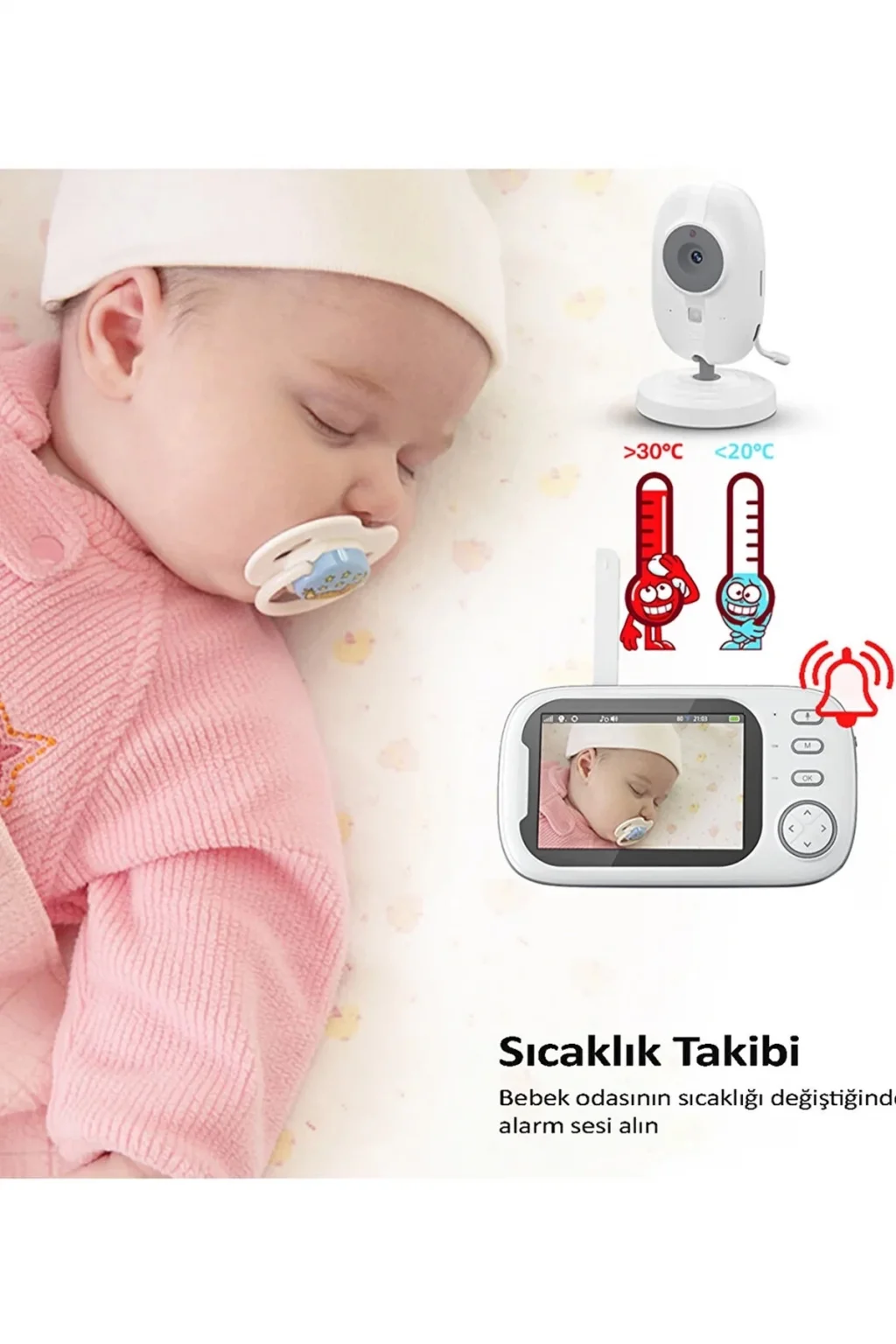 Kızılötesi gece görüş özelliği ile en karanlık ortamlarda bile en iyi görüntüyle bebeğinizi takip edin. Ağladığında devreye giren sensor sayesinde istediğiniz zaman güvenliğini sağlayabilirsiniz. Çift yönlü ses görüşmesi sayesinde çocuğunuza komut verebilirsiniz. Oda sıcaklığını istediğiniz seviyede tutmak için uyarıcı özelliğini aktif edebilirsiniz. Tüm görüntüleri kartınıza kaydedip daha sonra tekrar izleyebilirsiniz.
