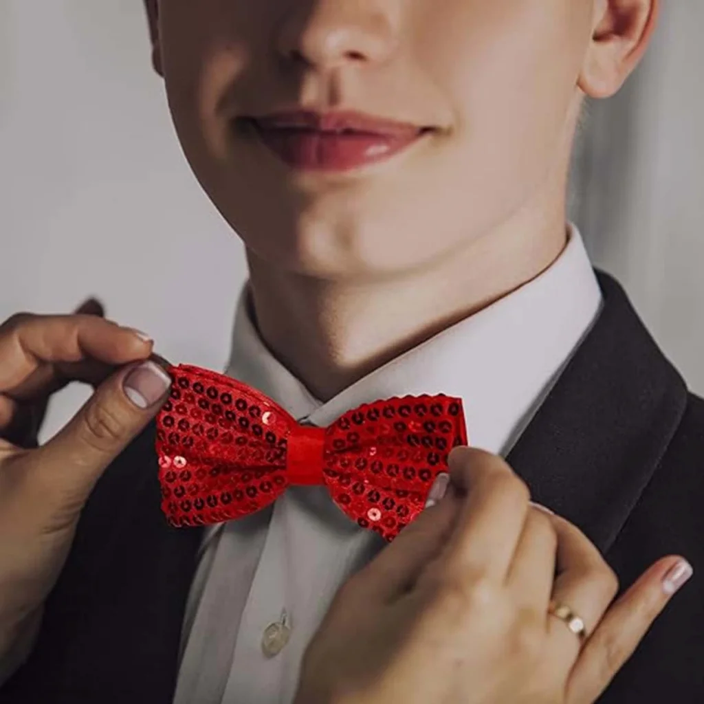 Gece Işıltısı Kırmızı Payetli Pullu Papyon: Zarafetin Işıltısı