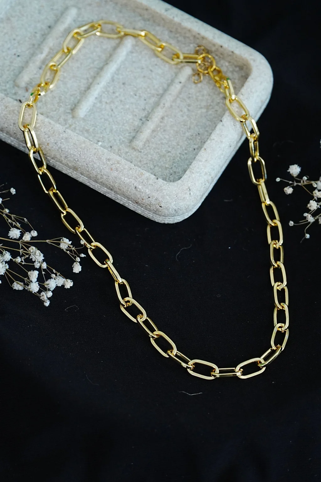 Zamansız şıklığın anahtarı! Altın rengi ve kalın dikdörtgen zincir detaylarıyla öne çıkan bu gerdanlık kolye, tarz sahibi kadınların favorisi olmaya aday. Minimal ve modern tasarımı sayesinde her kombine uyum sağlar, dikkat çekici bir görünüm sunar.