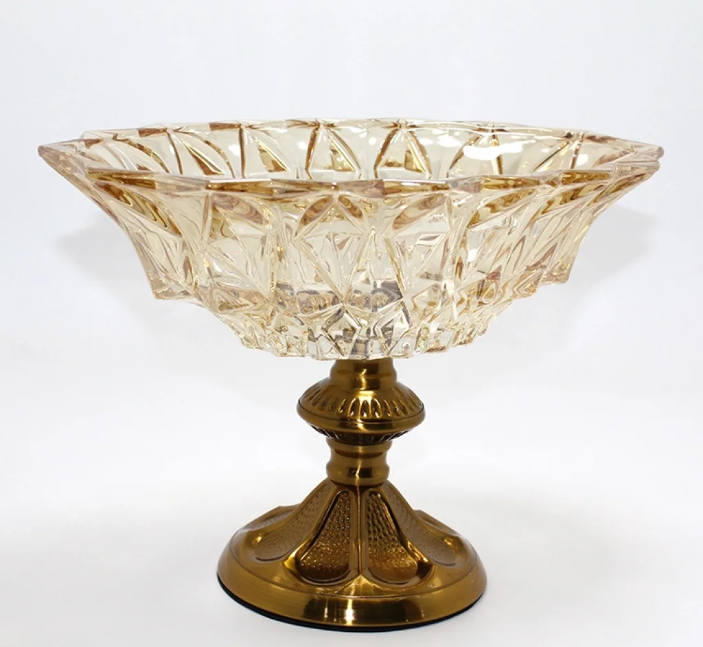 Gold Detaylı Eskitme Ayaklı Dekoratif Cam SunumlukSofralarınızda zamansız bir zarafete yer açın! Gold Detaylı Eskitme Ayaklı Dekoratif Cam Sunumluk, antik dokulu metal işçiliği ile modern cam tasarımını mükemmel bir dengede buluşturuyor. 30 x 16 x 19 x 13 cm boyutlarındaki geniş ve derin yapısı, bu sunumluğu hem şık bir meyvelik hem de gösterişli bir ikramlık haline getiriyor. Eskitme gold rengindeki ayakları, ürüne klasik bir ağırlık katarken yüksek kaliteli cam haznesi sunumlarınızın tüm pırıltısını dışarı yansıtır. Salonunuzda, yemek masanızda veya dresuar üzerinde dekoratif bir merkez parçası olarak kullanım için idealdir.Ürün ÖzellikleriÖzellikDetayÜrün AdıEskitme Gold Detaylı Dekoratif Cam SunumlukMalzemeKaliteli Cam & Antik Eskitme Kaplama MetalÖlçüler30 cm (Genişlik) x 16 cm (Derinlik) x 19 cm (Yükseklik) x 13 cm (Hazne Derinliği)TasarımAntik Formlu Eskitme Ayaklı KaideRenkŞeffaf Cam & Eskitme AltınKullanım AlanıMeyvelik, Büyük Boy Şekerlik, Dekoratif ObjeStilVintage, Klasik ve Elegant