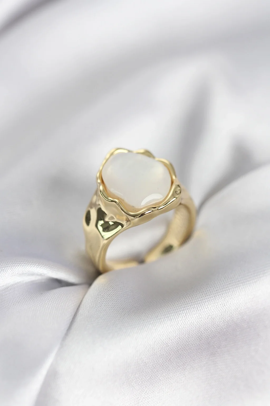 BUĞZ Gold Renk Beyaz Taşlı Vintage Kadın Yüzük