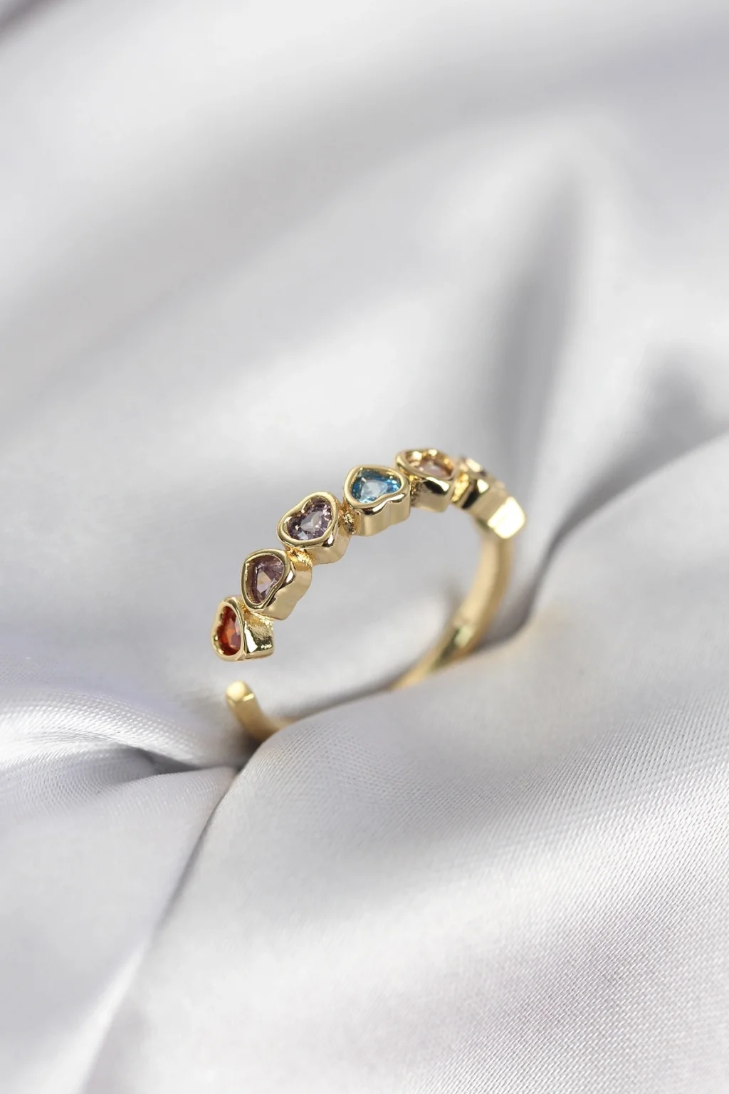 BUĞZ Gold Renk Kalp Model Renkli Zirkon Taşlı Kadın Yüzük