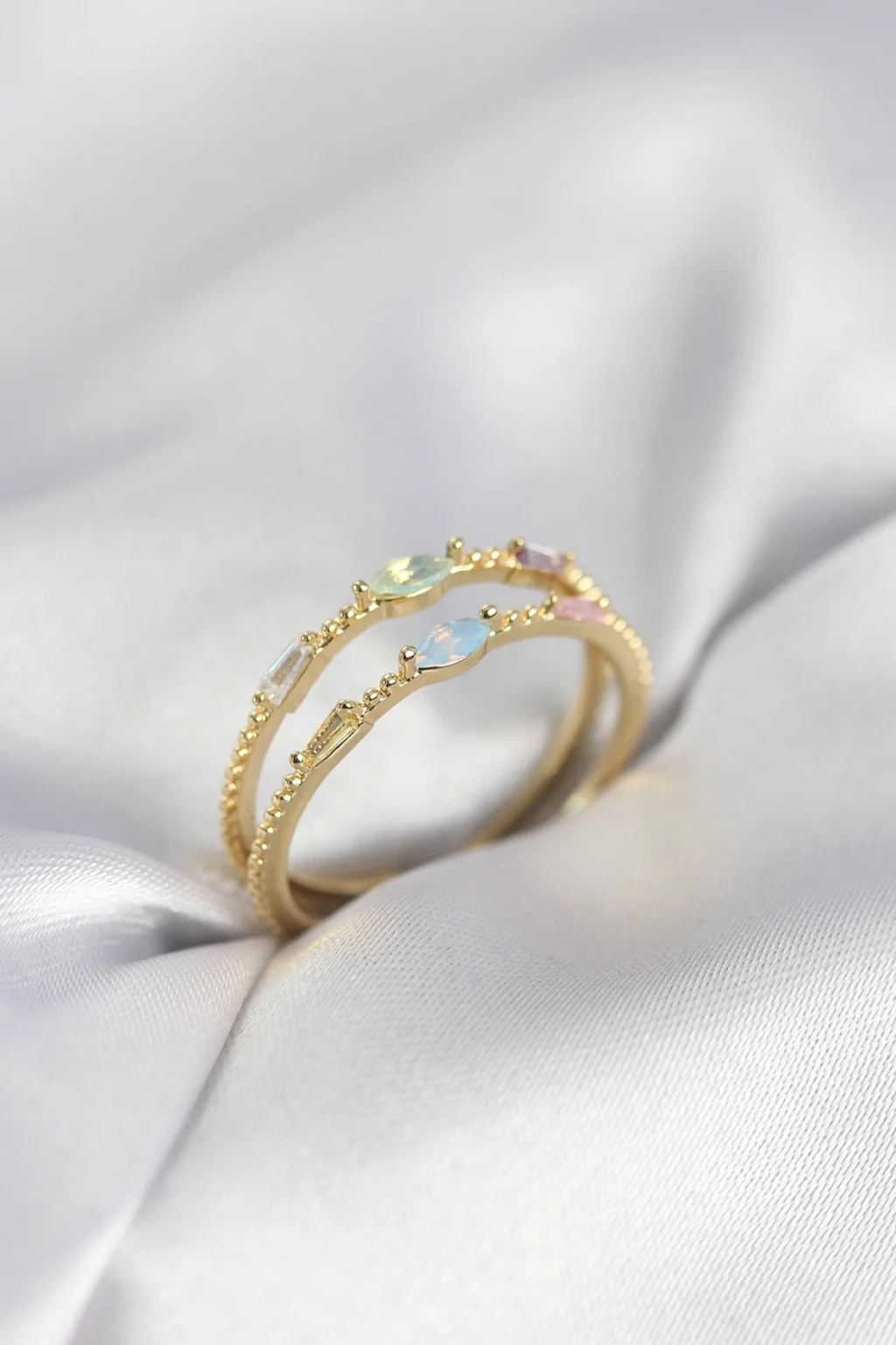 BUĞZ Gold Renk Karışık Renk Zirkon Taşlı Kadın Yüzük