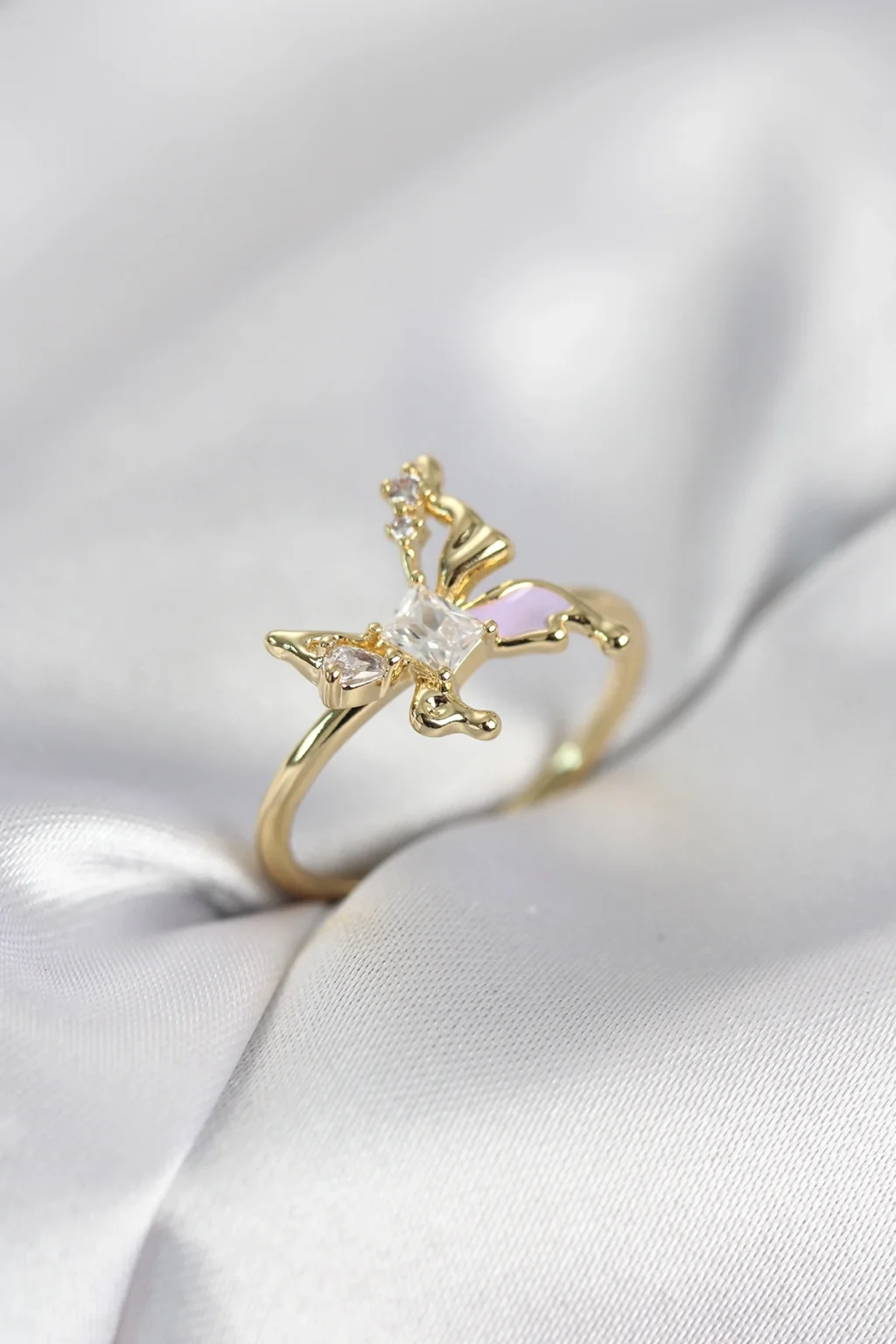 BUĞZ Gold Renk Kelebek Model Zirkon Taşlı Kadın Yüzük