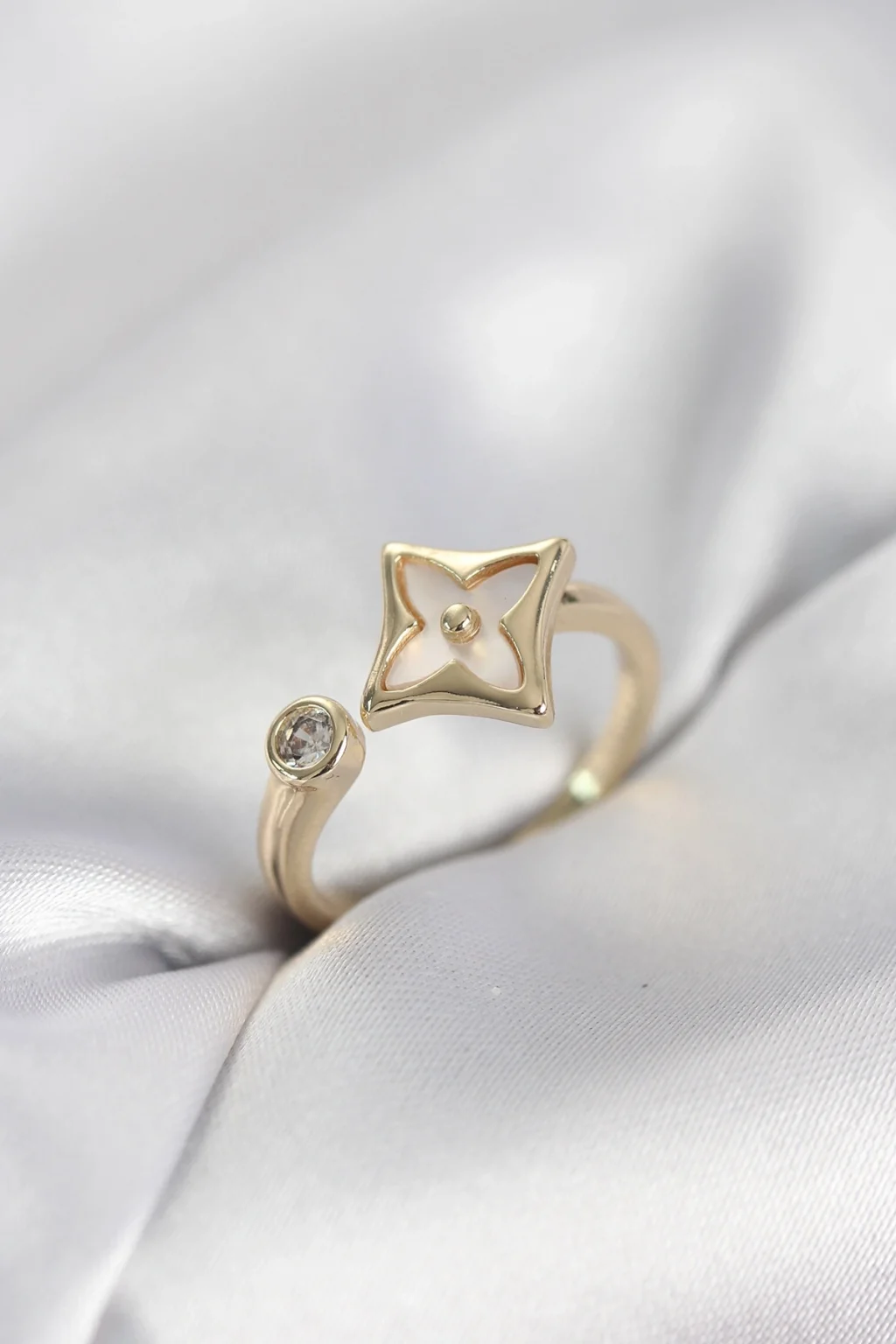 BUĞZ Gold Renk Köşeli Yonca Model Zirkon Taşlı Kadın Yüzük